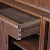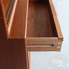 9 skåpselement i teak, med skjutdörrar och tapplådor,