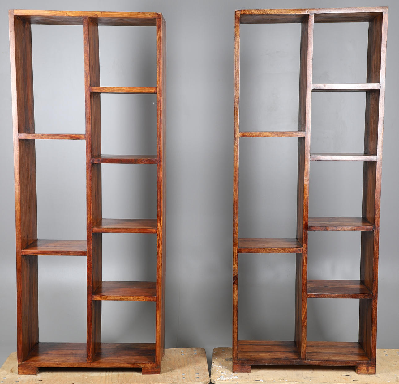 3751844. ETT PAR MODERNA HYLLOR AV LÖVTRÄ.