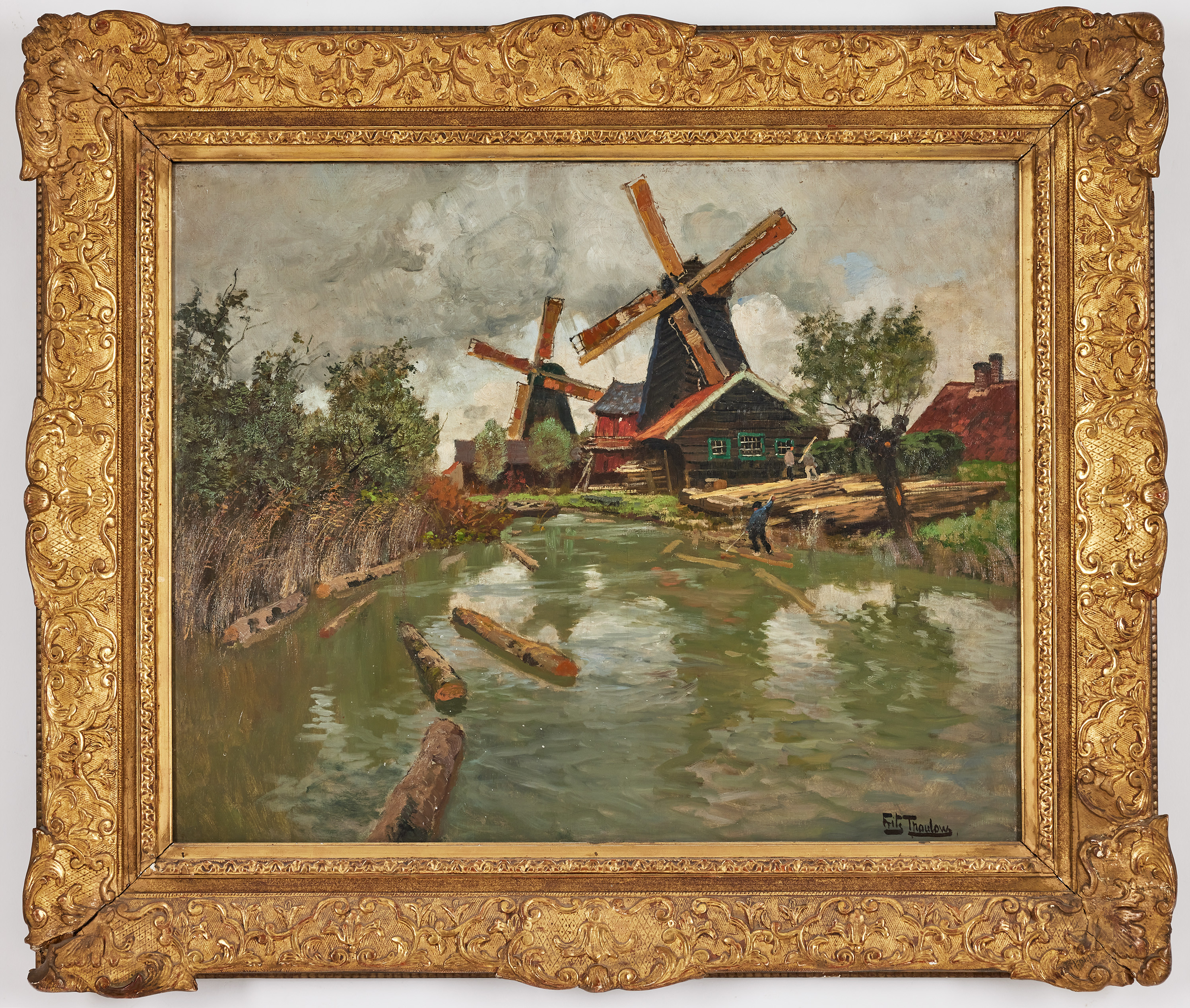 638. 3753887. FRITS THAULOW (1847-1906). Väderkvarnar, Holland.