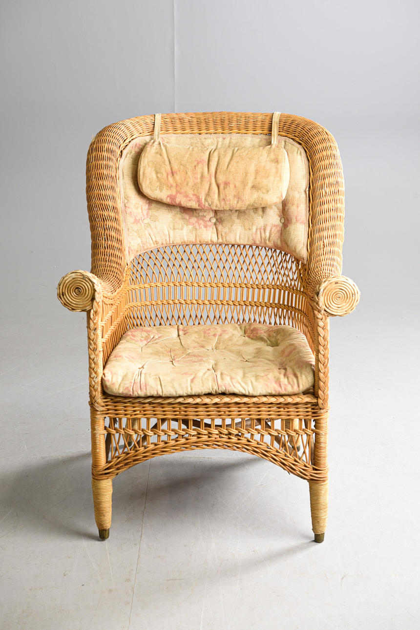 Rotting. Tygklädsel. Bredd 68, höjd 92, sitshöjd 42 cm.