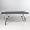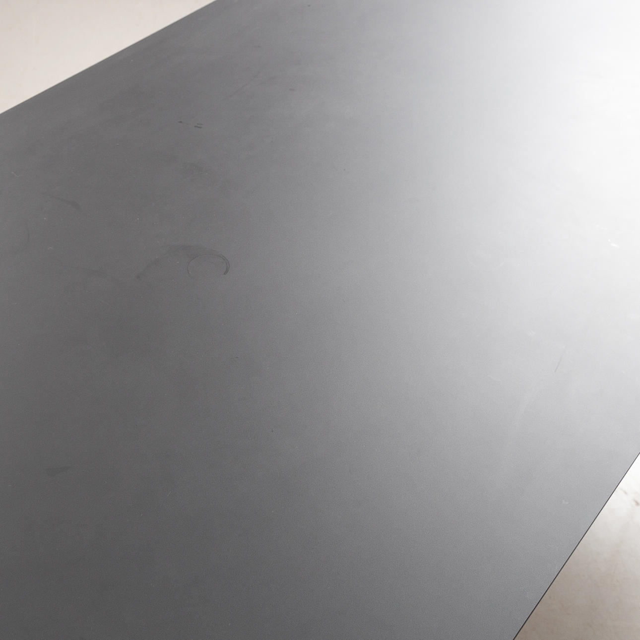 Toppskiva tillverkad av svart nanolaminat, svärtat stålunderrede, höjd ca 72, 180x100 cm.