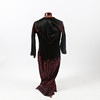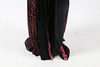 Av svart siden med handsydd röd och rosa korsstygn. 136 cm längd.