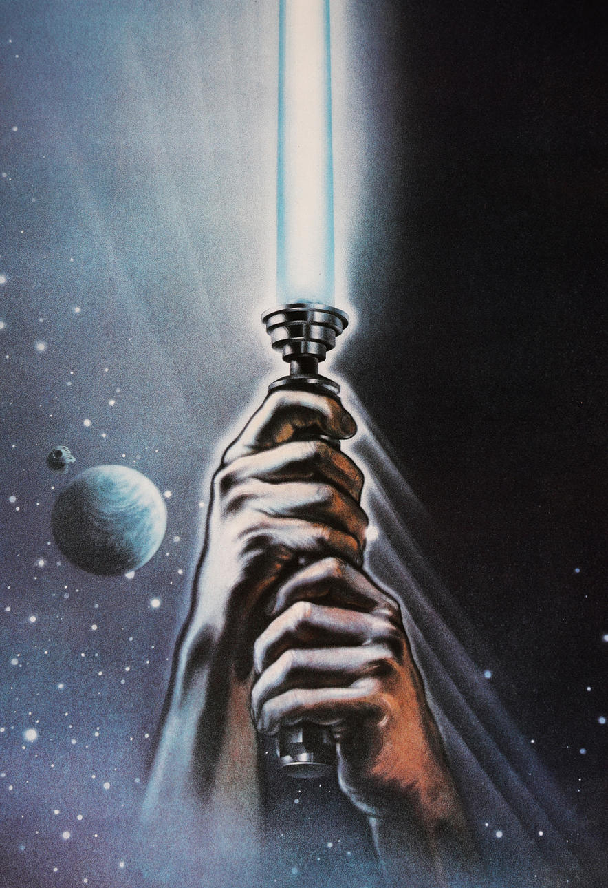 Designad av Paykos Phior med konstverk av Tim Reamer, stilen En enarksaffisch tryckt i USA för att främja lanseringen, med Luke Skywalkers ikoniska blå ljussabel, #830013 längst ner till vänster om brädan, 104 cm x 68,5 cm (27 tum x 41").