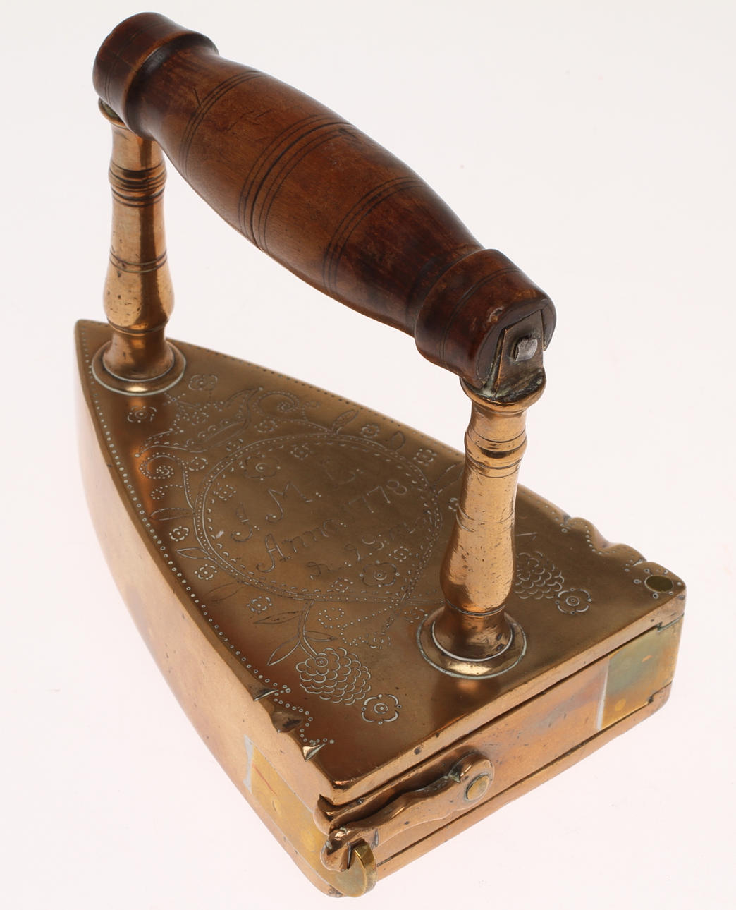 37610. STRYKJÄRN, mässing, daterad 1778.