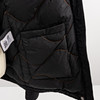 Foder och yttertyg i polyester, fyllning av 90% dun och 10% fjäder, luva med avtagbar naturpäls, utsida med 6 fickor i olika storlek, dragsko för anpassning av midjemått. Insida med 2 fickor. Längd ca 66 cm.