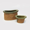 Signerade, stengods med partiell glasyr i grönt, längd 18 och 26,5 cm.