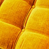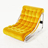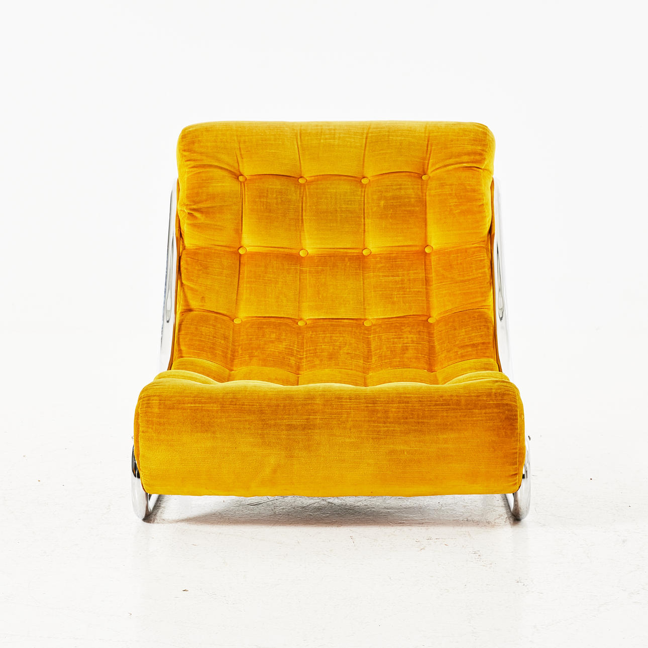 Plyschklädsel i gult, djuphäftad, kromad benställning.