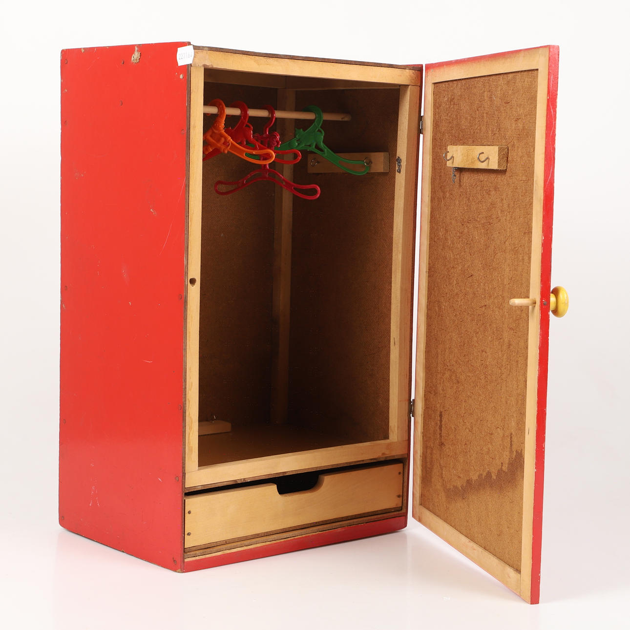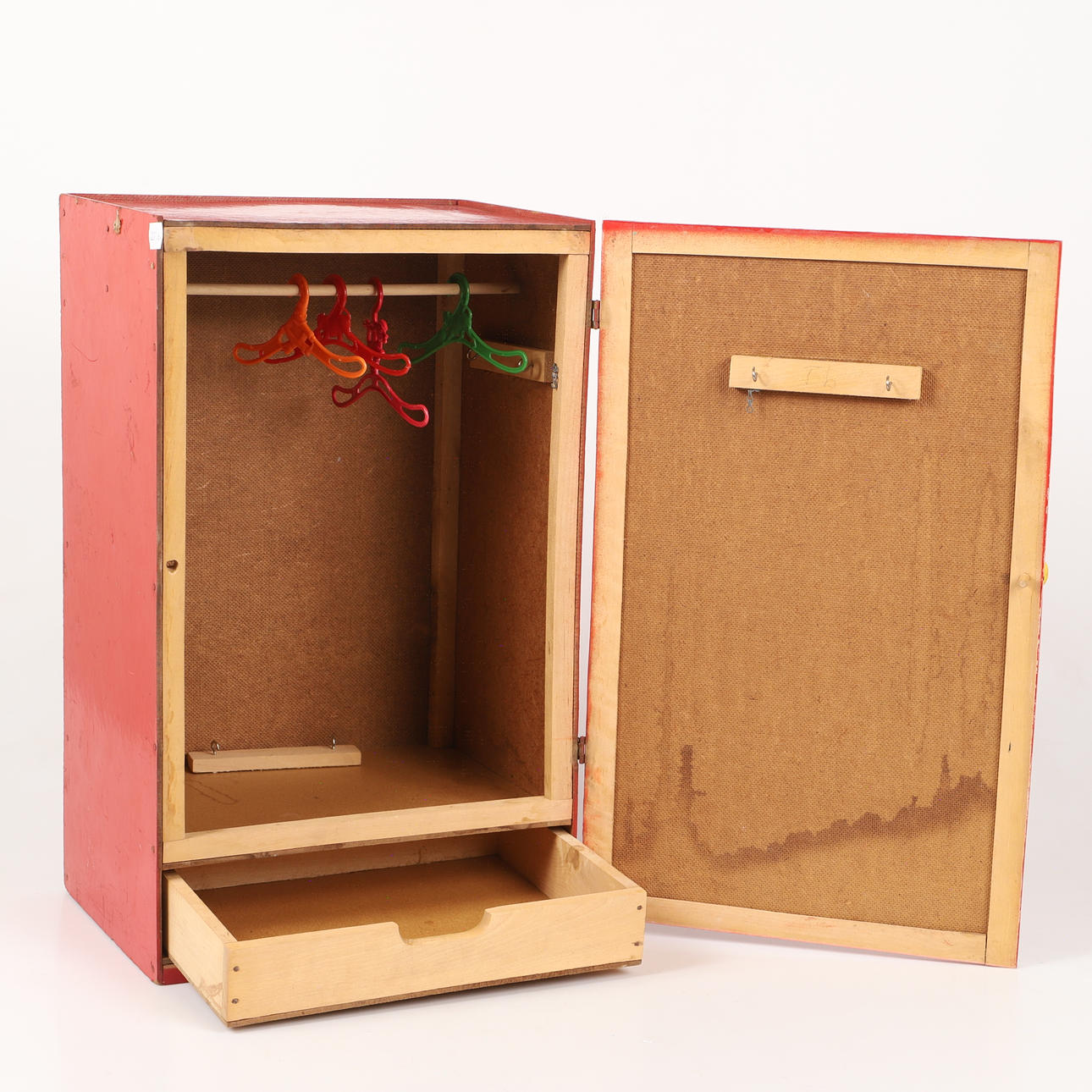 Färgslitage, klistermärkesrester, listdel har släppt inuti garderoben.