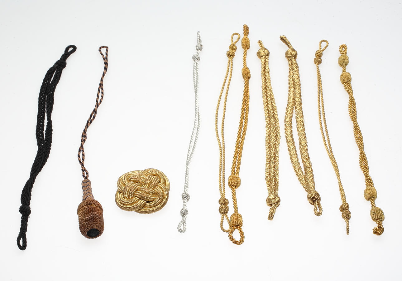 9 snoddar i textilt material.