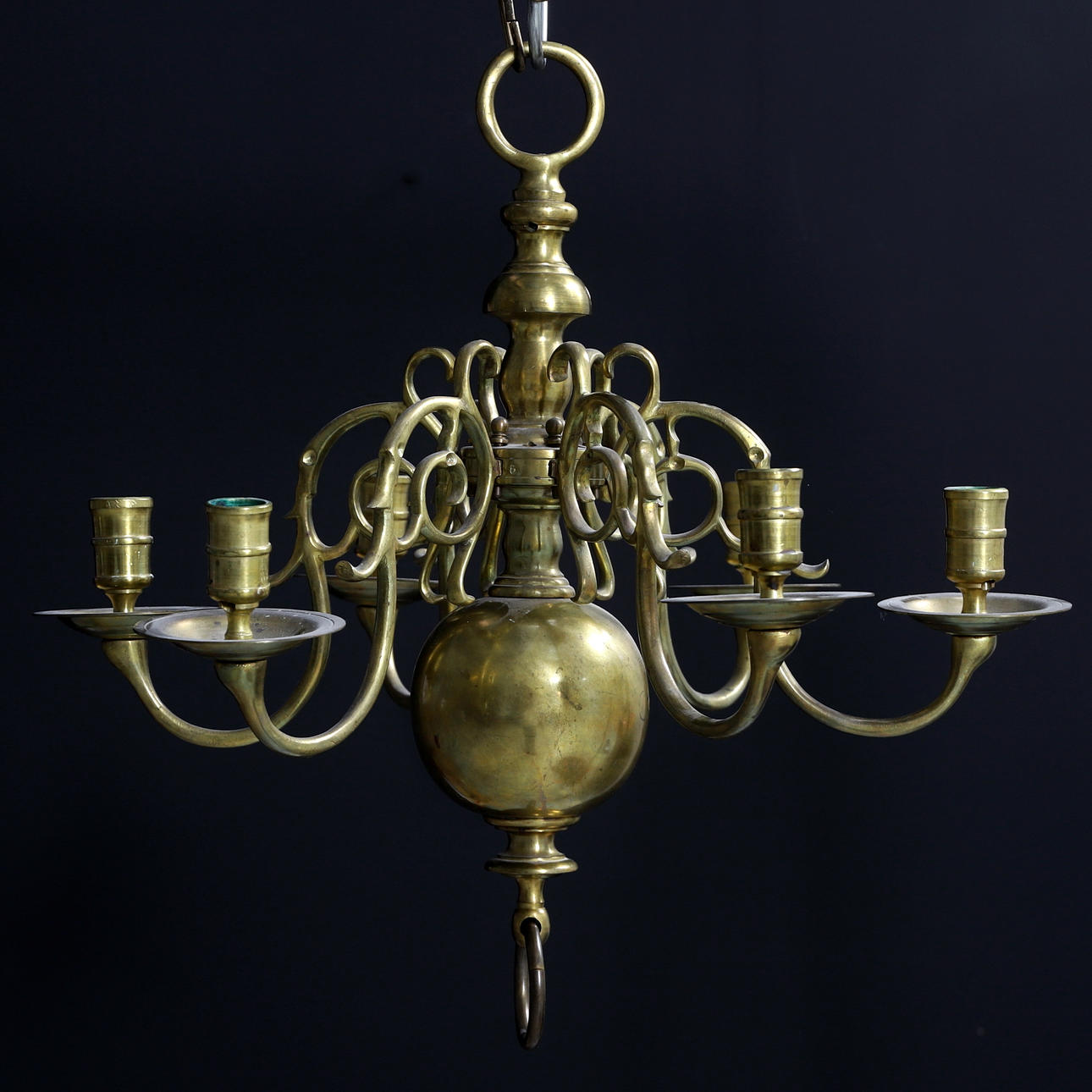 Sex ljusarmar. Diameter ca 47 cm. Höjd ca 45 cm exklusive kedja.