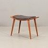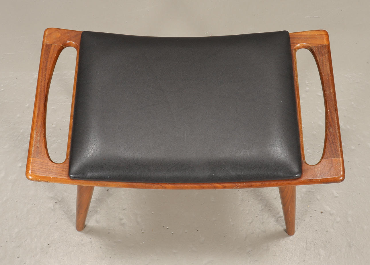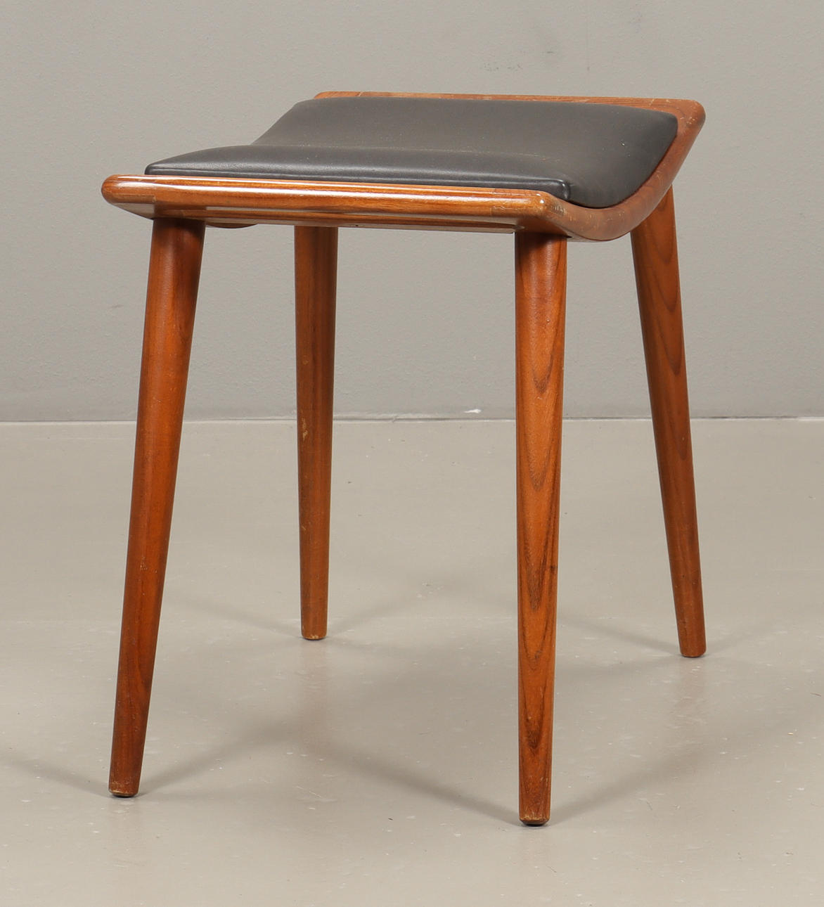 Teak, klädd med svart konstskinn.