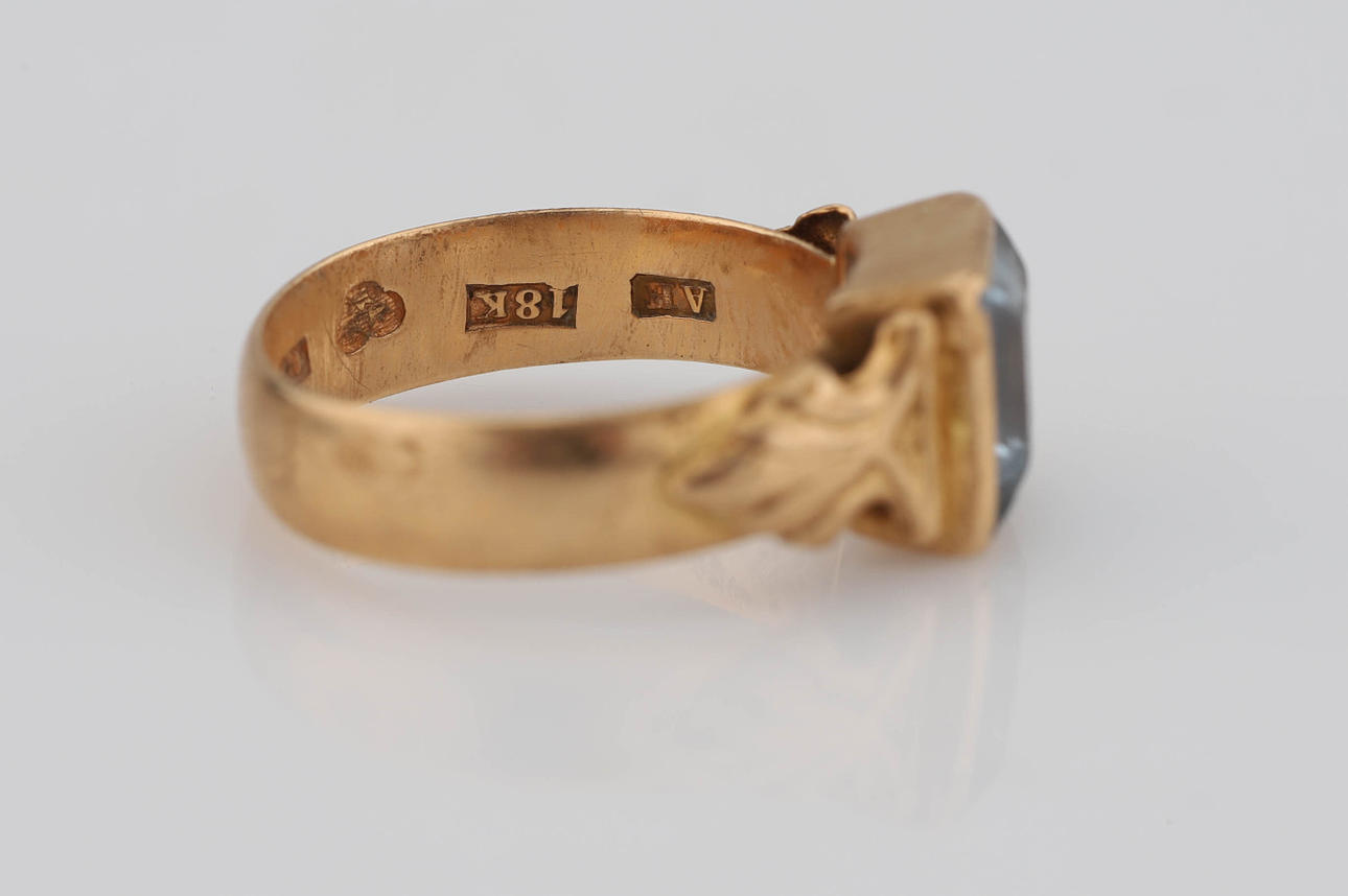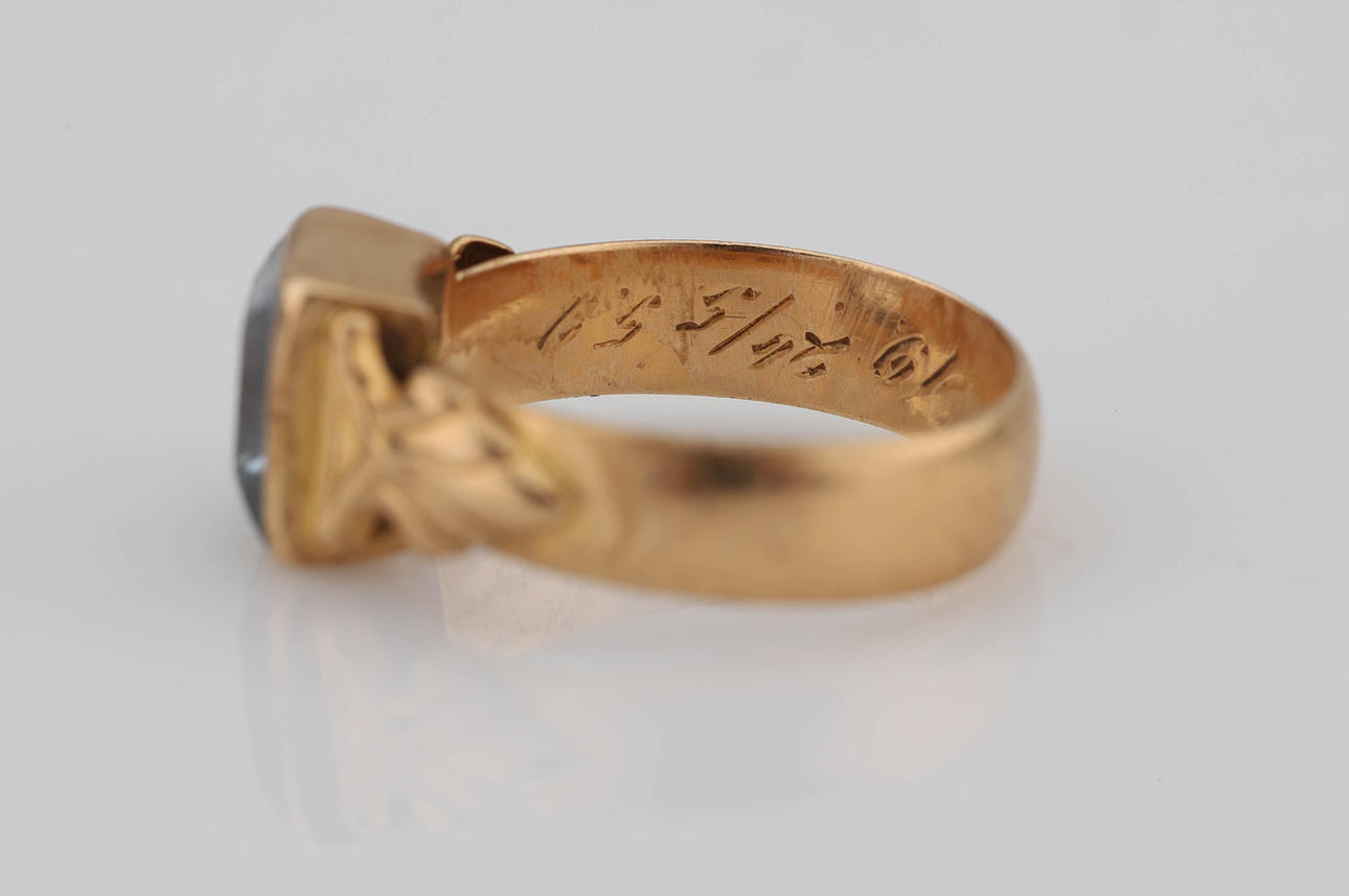 Bruksslitage, sten med kraftigt slitage. Gravyr.