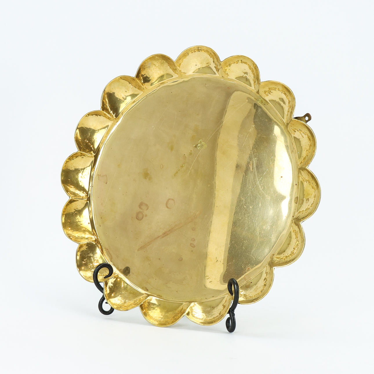 Mässing med veckad kant. Höjd 3,5 Diameter 38 cm.