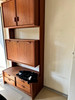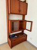 teakträ 2 hyllsystem, var och en med olika skåp och sidopaneler. Dessutom 4 individuella, matchande element (skåp, byrå, hylla).