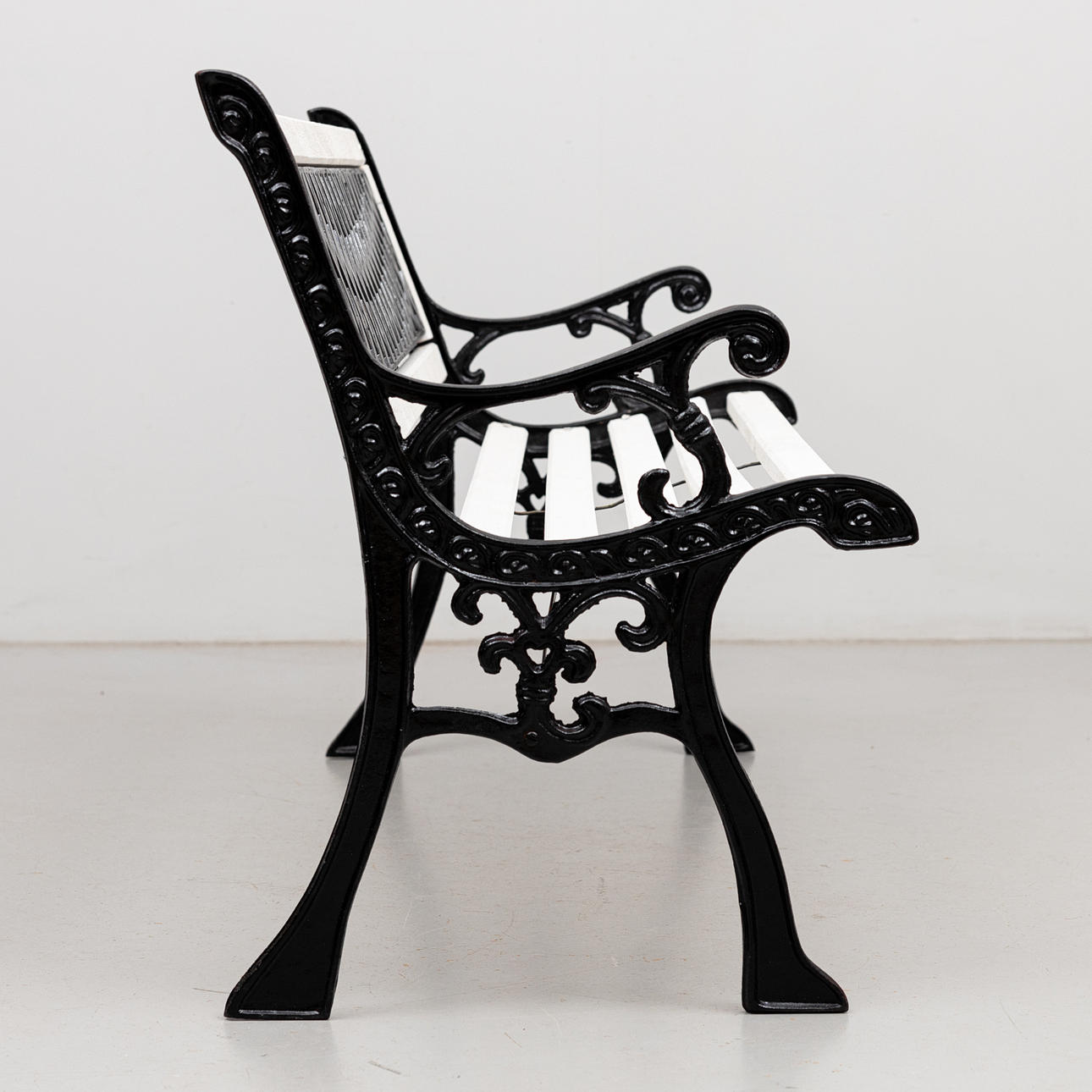Längd ca 123 cm. Sitthöjd 38, rygghöjd 74 cm.
