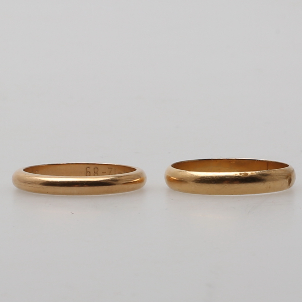 377929. RINGAR 2 st, 18k, gulguld, vikt ca 8,2 gram.