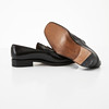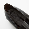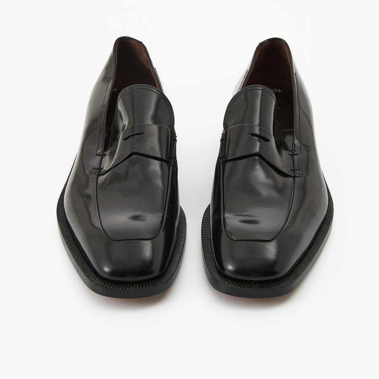S.k. pennyloafers, i svart lackat skinn med ljus lädersula, märkt "Moreschi made in Italy", storlek enligt märkning 10.