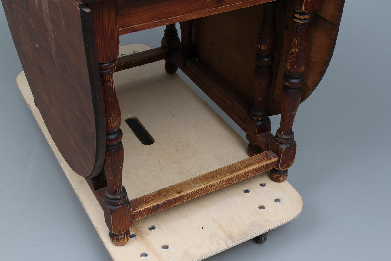 Furu brunbets. Allmogestil med lådor i sarg. Oval form Längd 65/200, bredd 90 cm.