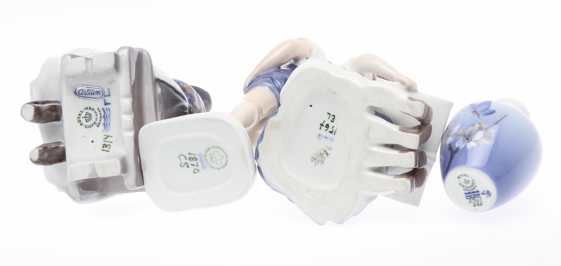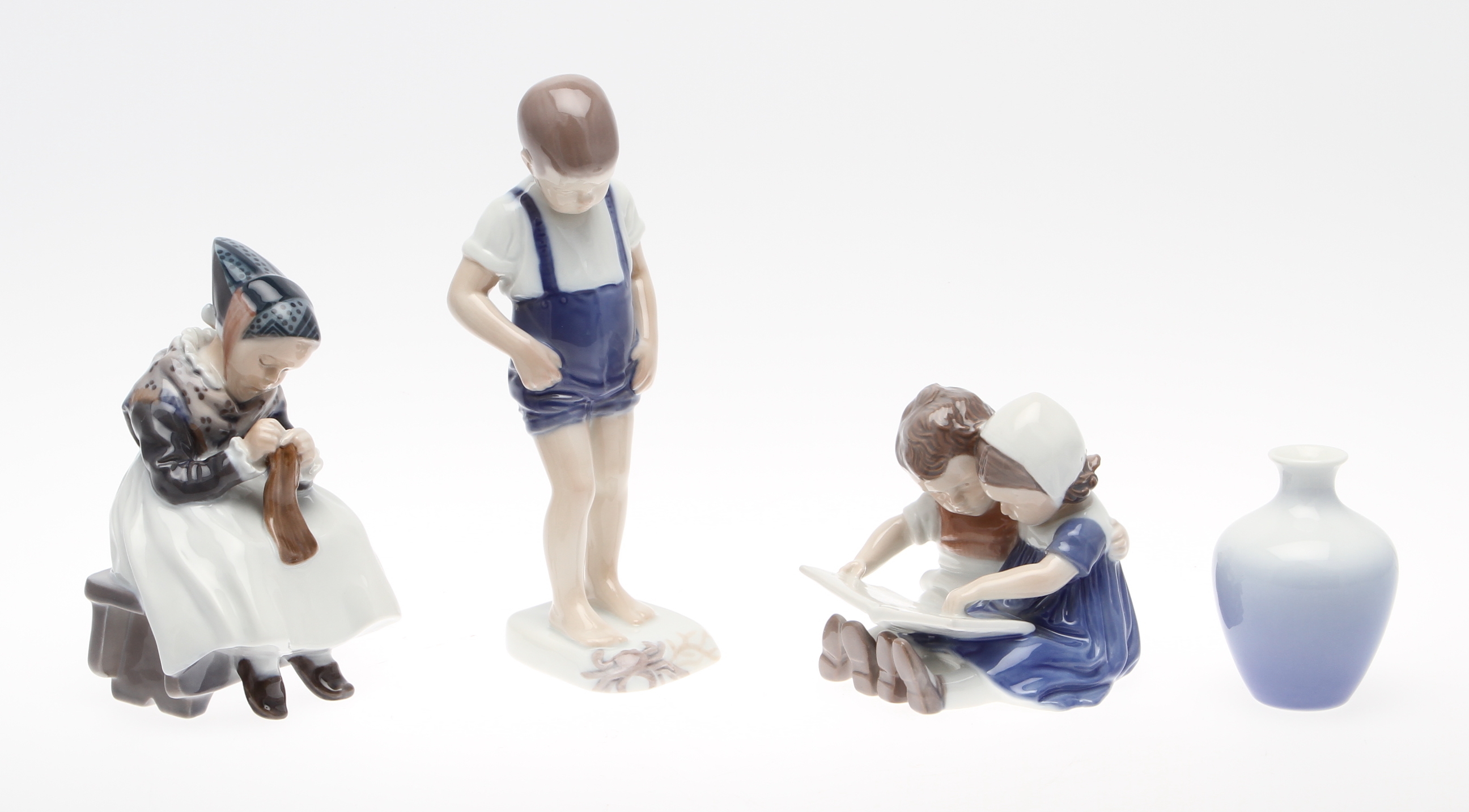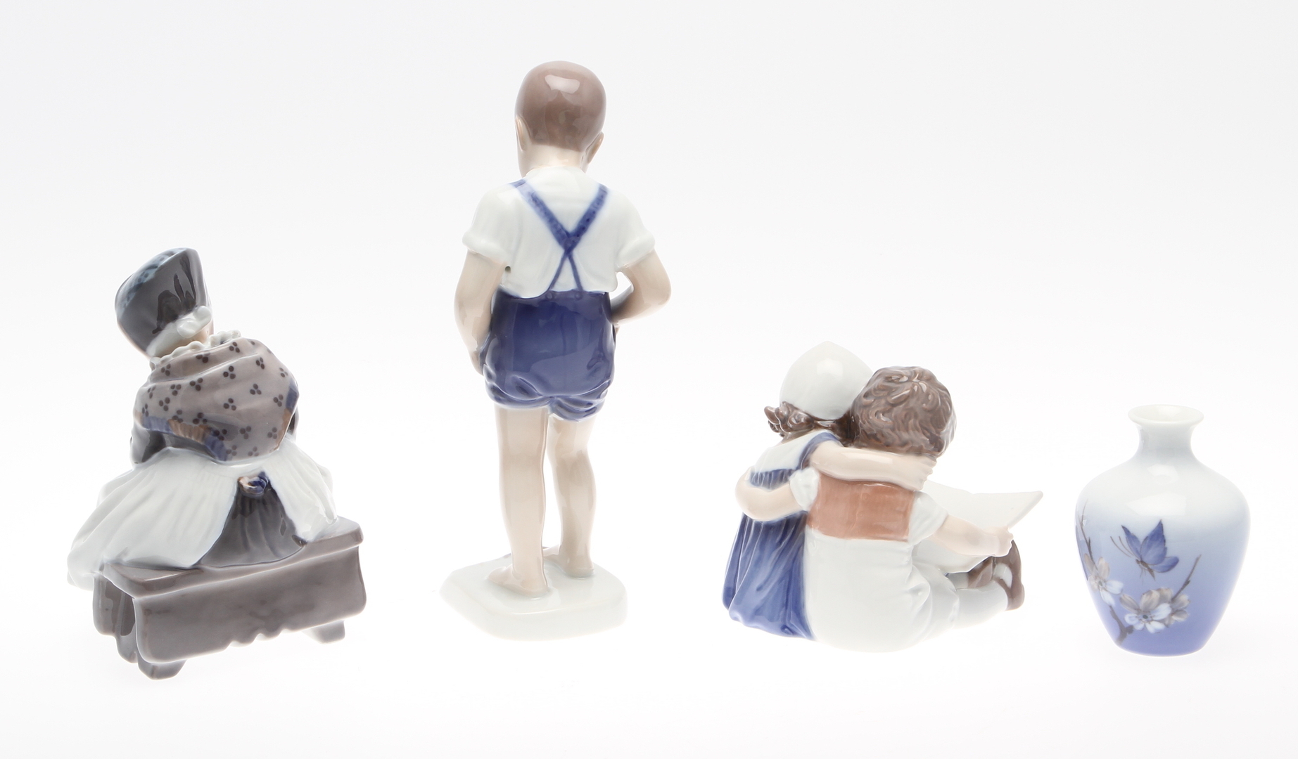 37899. PORSLINSFÖREMÅL. 4 delar, Danmark, 3 figurer samt 1 vas.