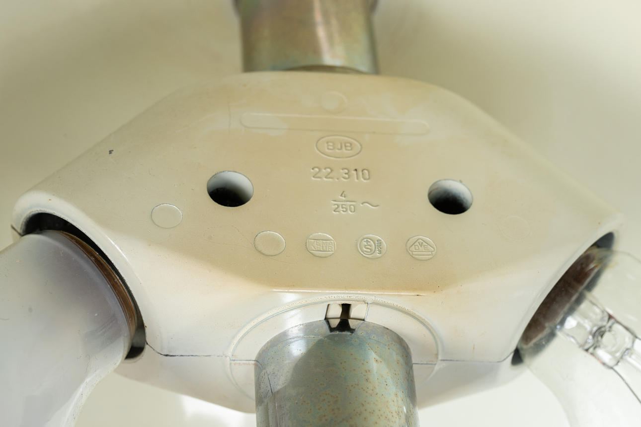krom och metall, målade. 2 belysningspunkter, E27 uttag. Slå på foten.