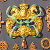Foulardsiden, smidesjärnbeslag mot grå botten