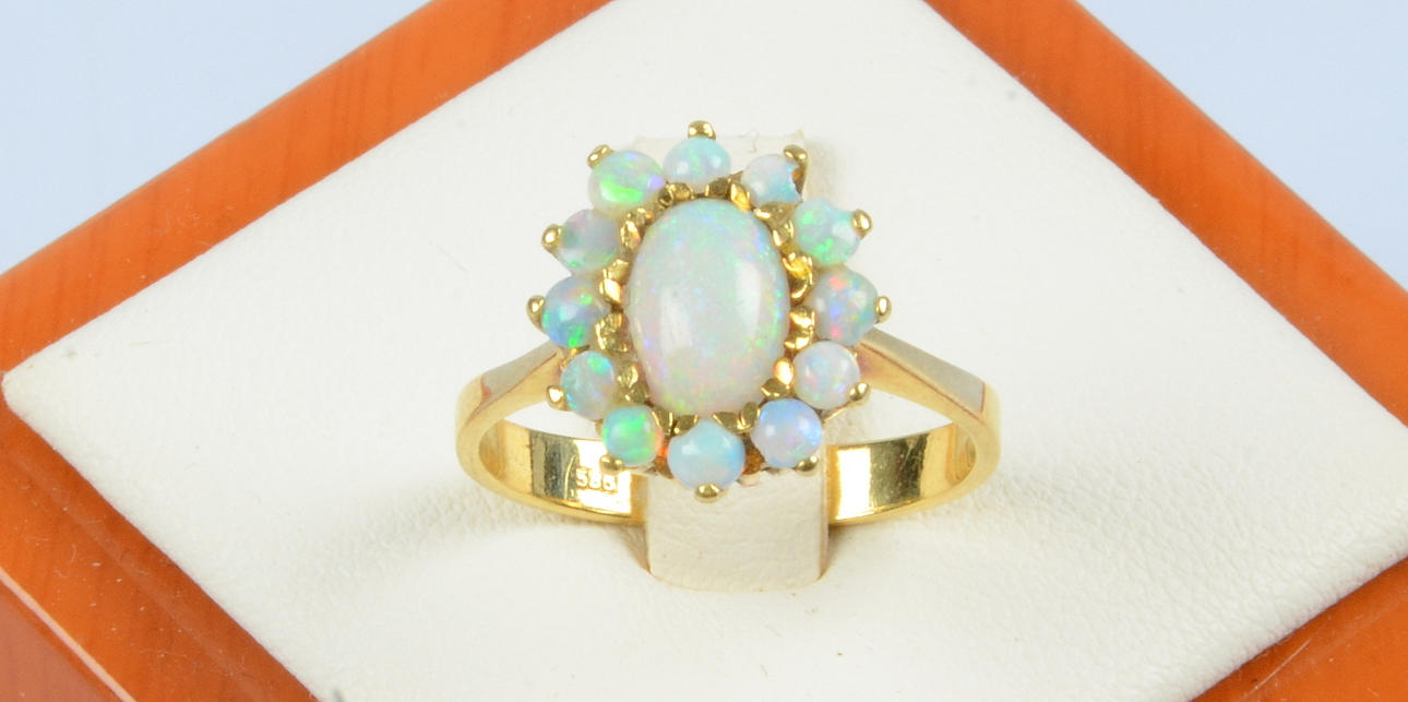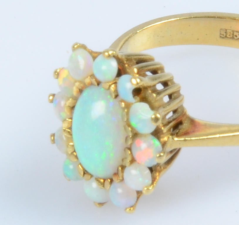 RING MED OPALER, 14K.