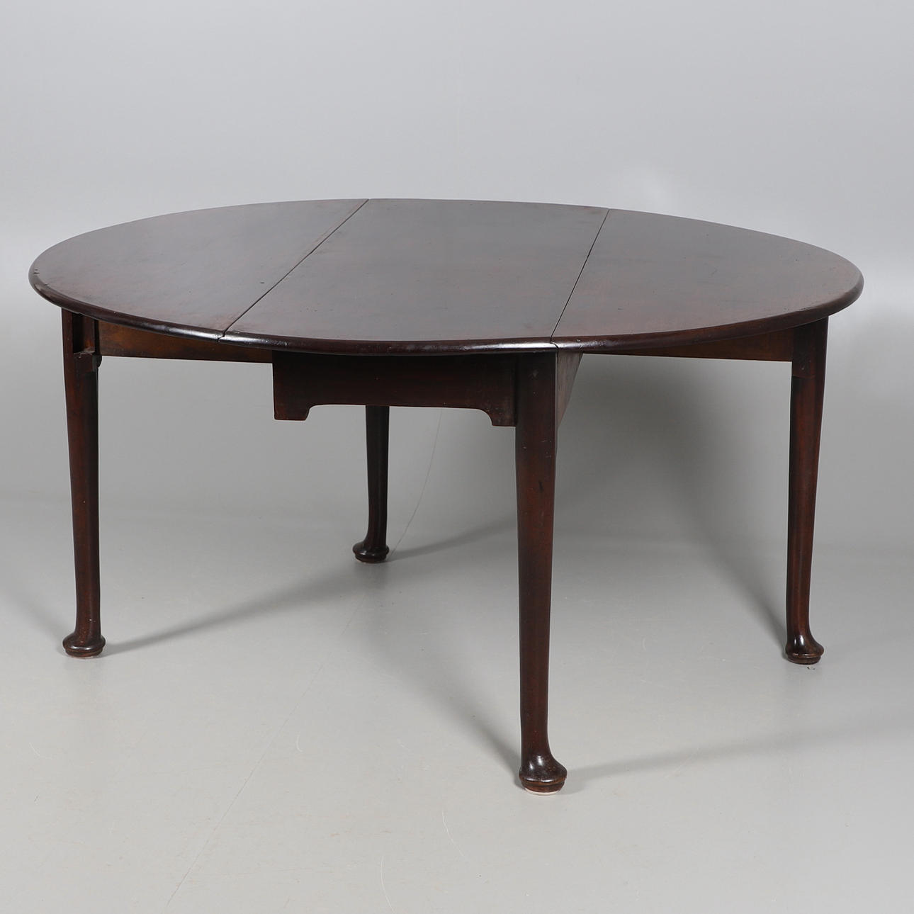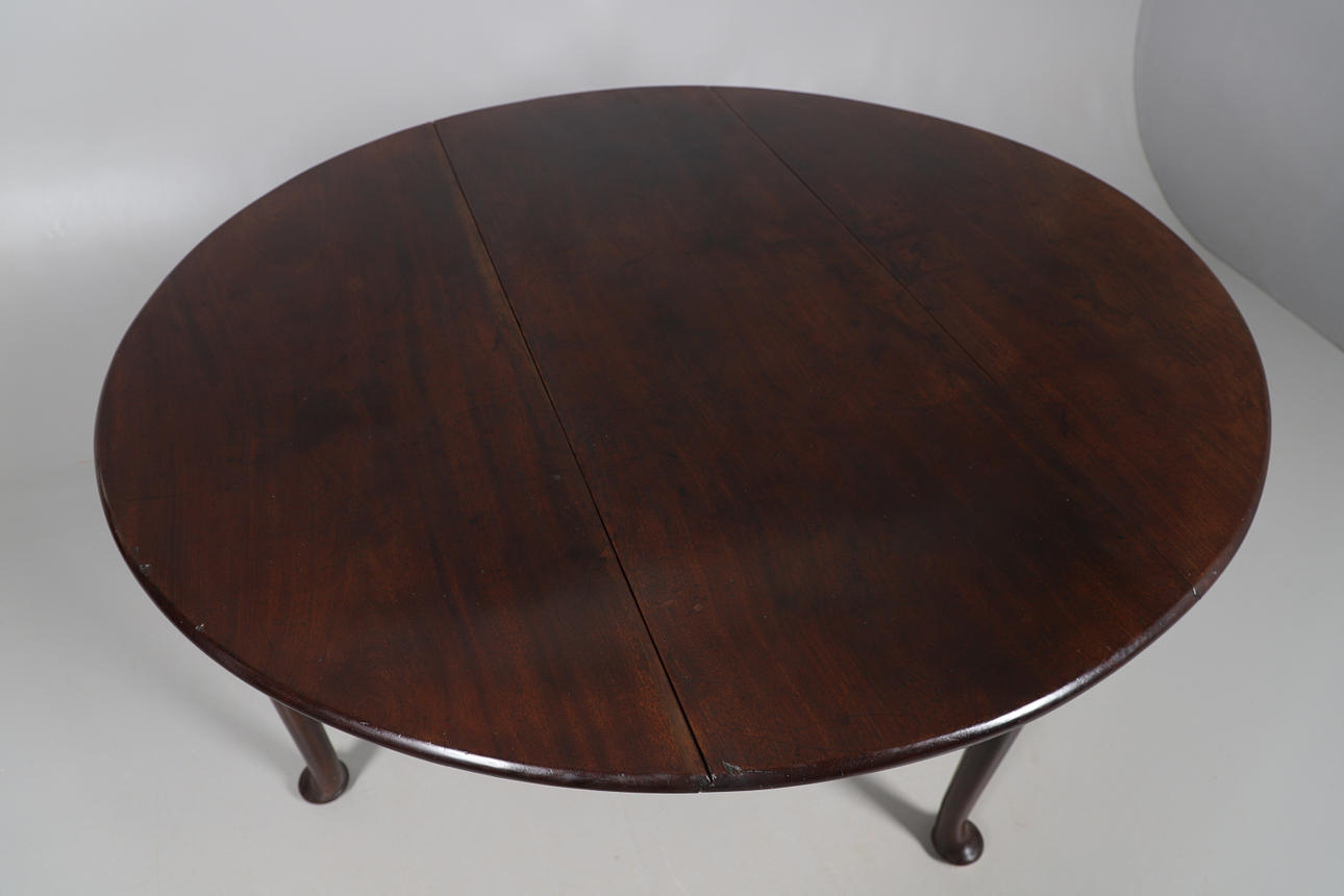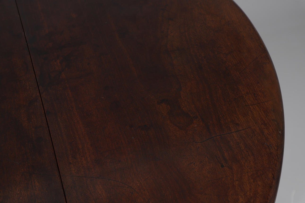 den ovala toppen till avsmalnande cylindriska ben och kuddfötter, höjd 71cm, bredd 121cm, djup 50cm djup (136cm helt öppen).