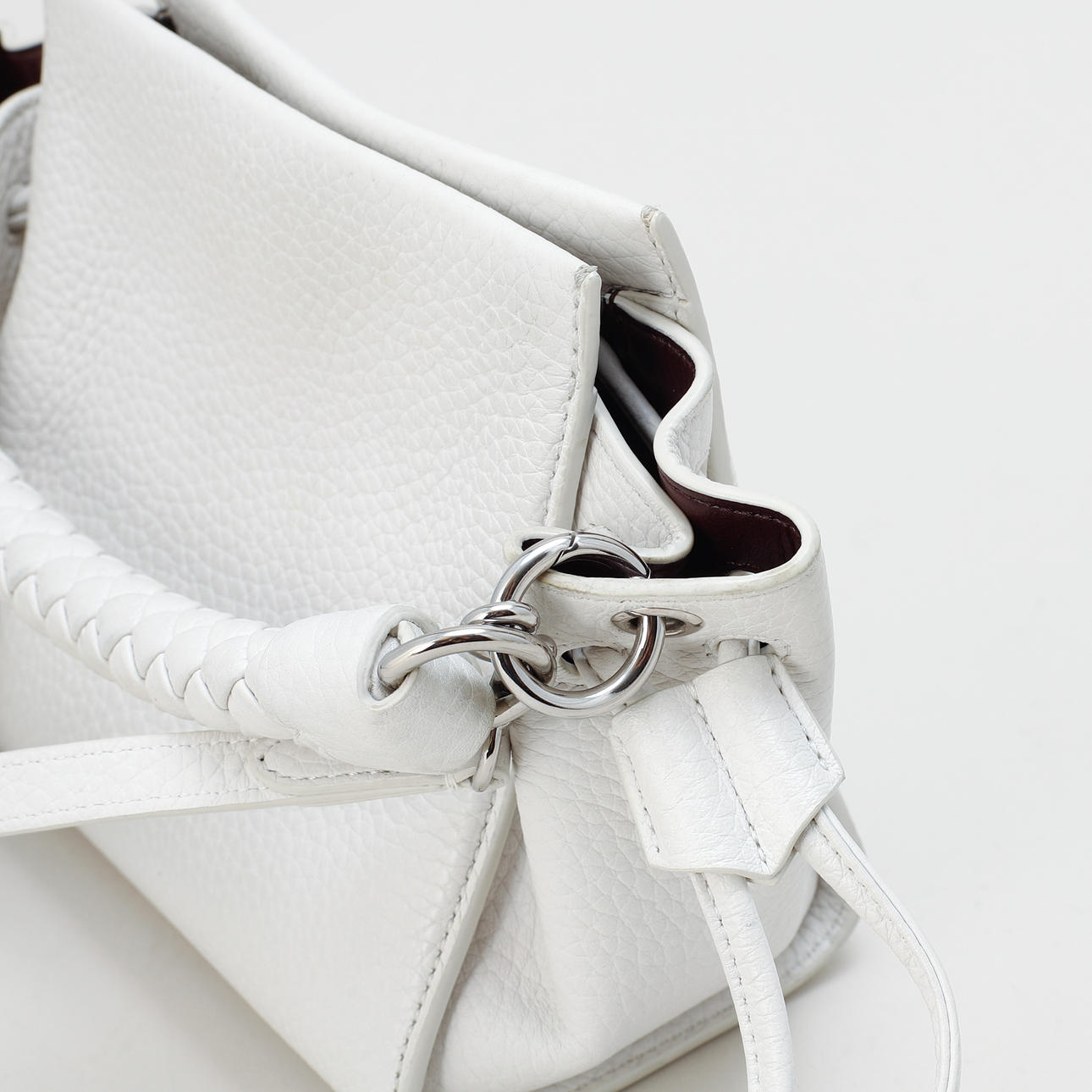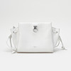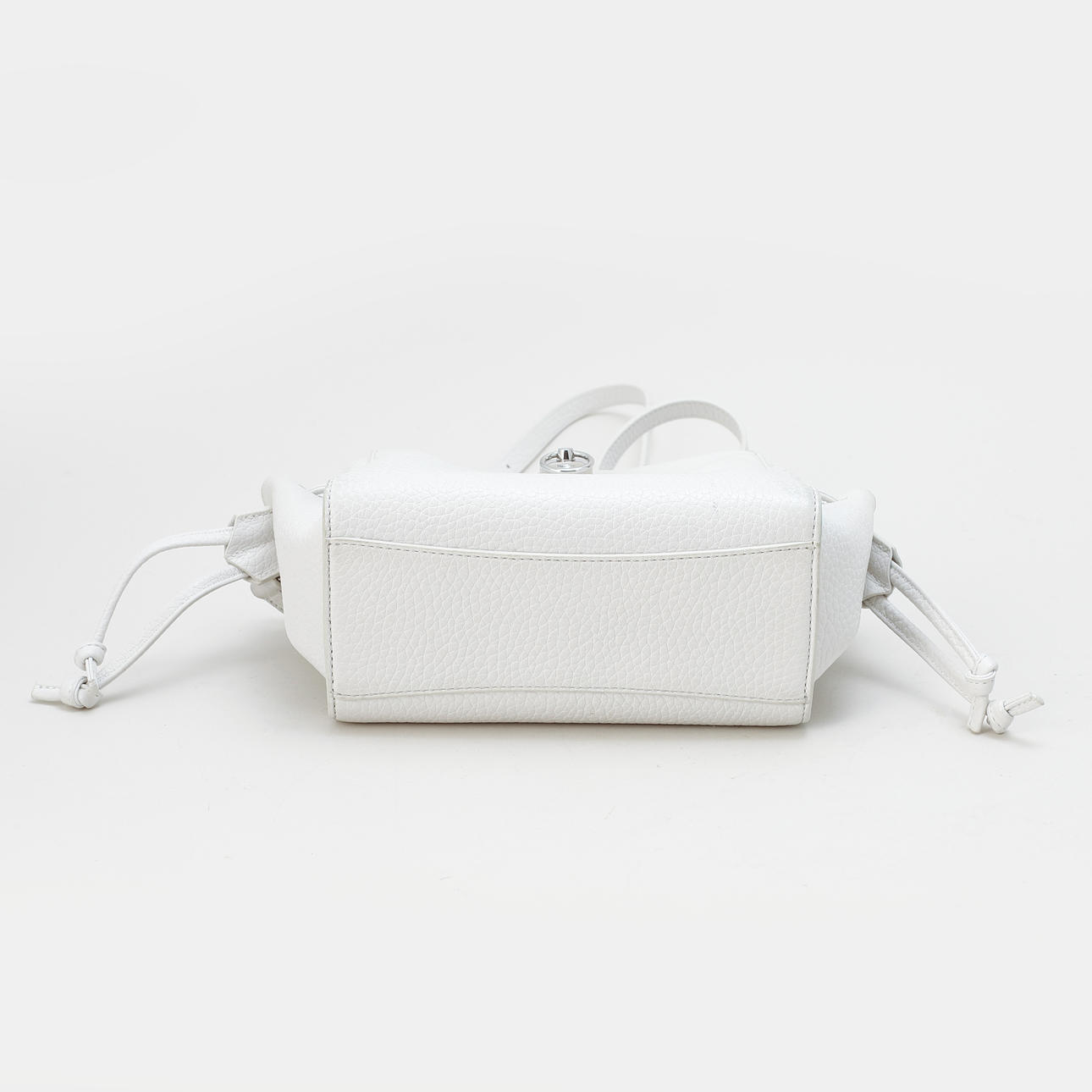 Vitt läder. Detaljer i vitmetall. 18x10x16.
