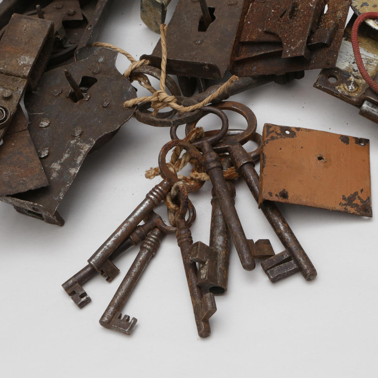 LÅS/DELAR och NYCKLAR, järn, i ask.
