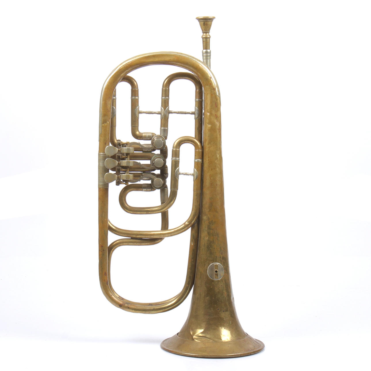 3803396. BLÅSINSTRUMENT, horn, mässing.