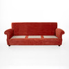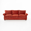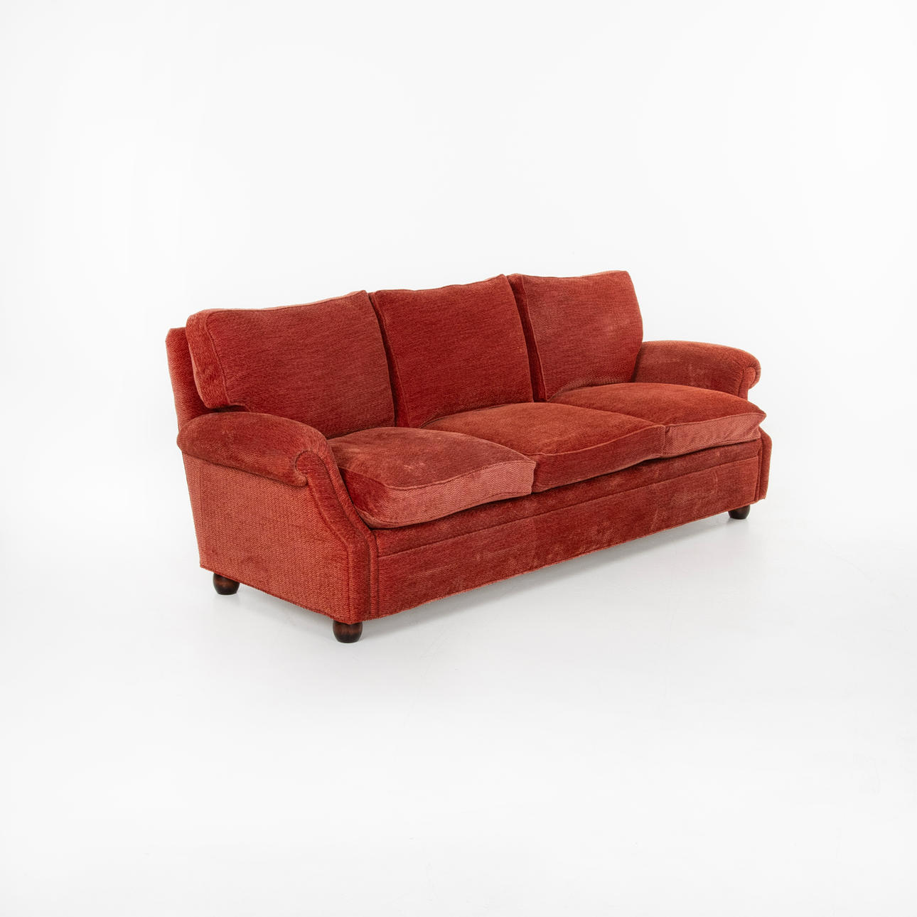 Soffa, 3-sits, helklädd i roströd sicksackmönstrad velourliknande textil. Lösa dynor, avtagbar klädsel.