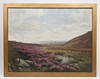 Utsikt över hedmarken med fårbete signerad (nere till vänster), olja på duk 45 cm x 61 cm.