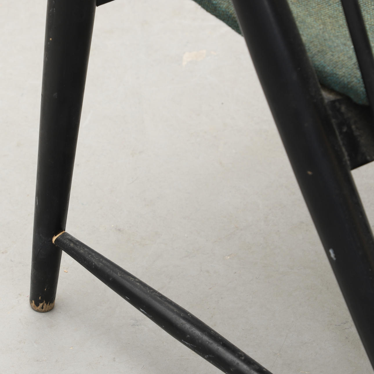 Bruksslitage, färgbortfall, skrapmärken, sitsens stoppning intorkad/smular.