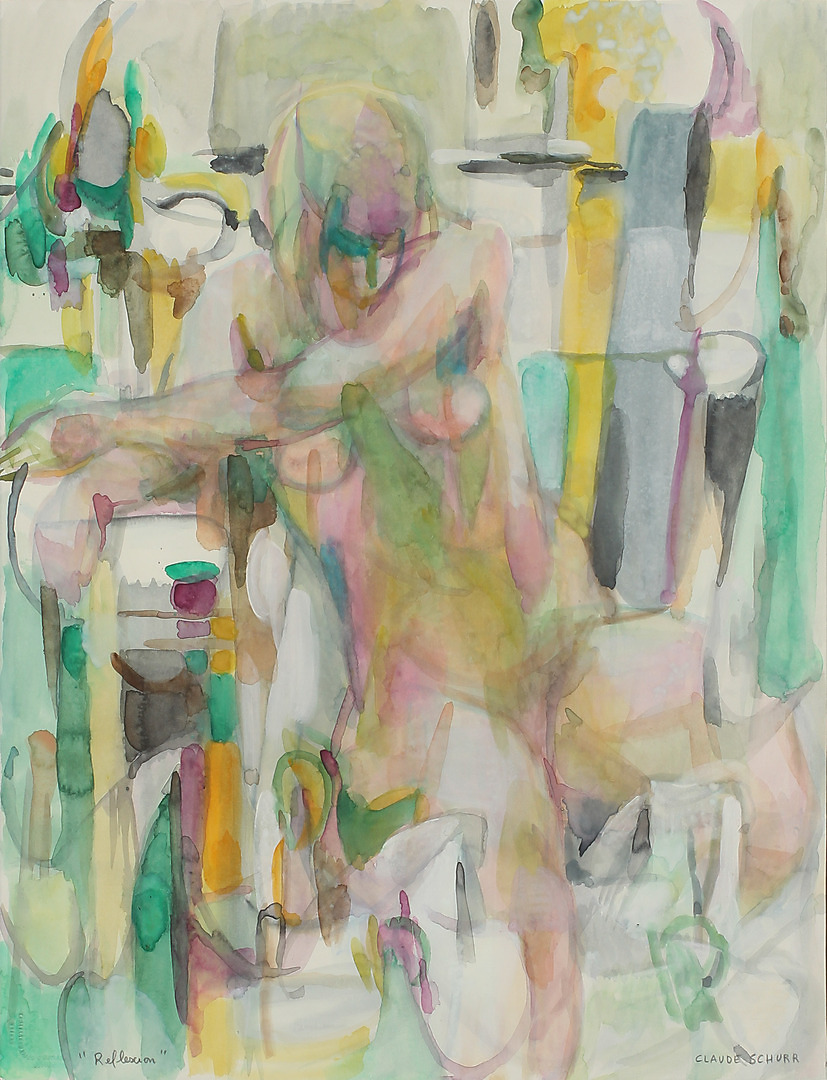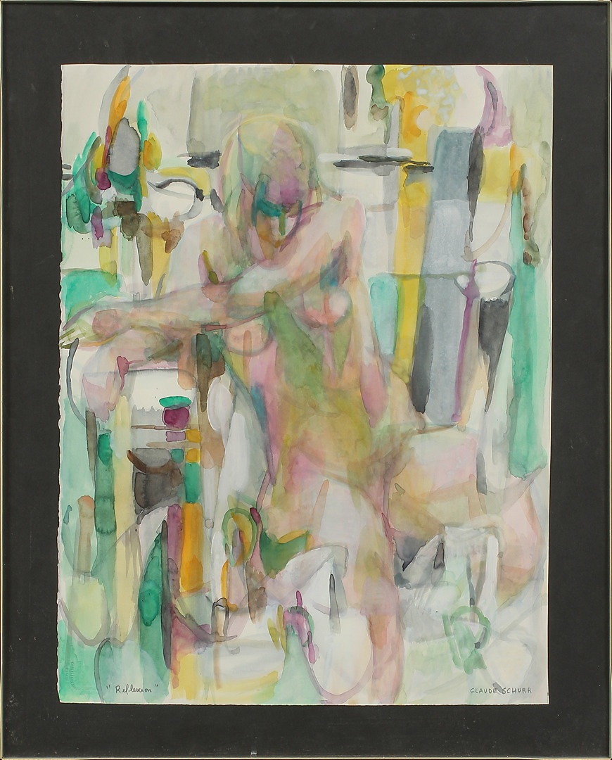381216. CLAUDE SCHURR. "Reflection", akvarell, signerad.