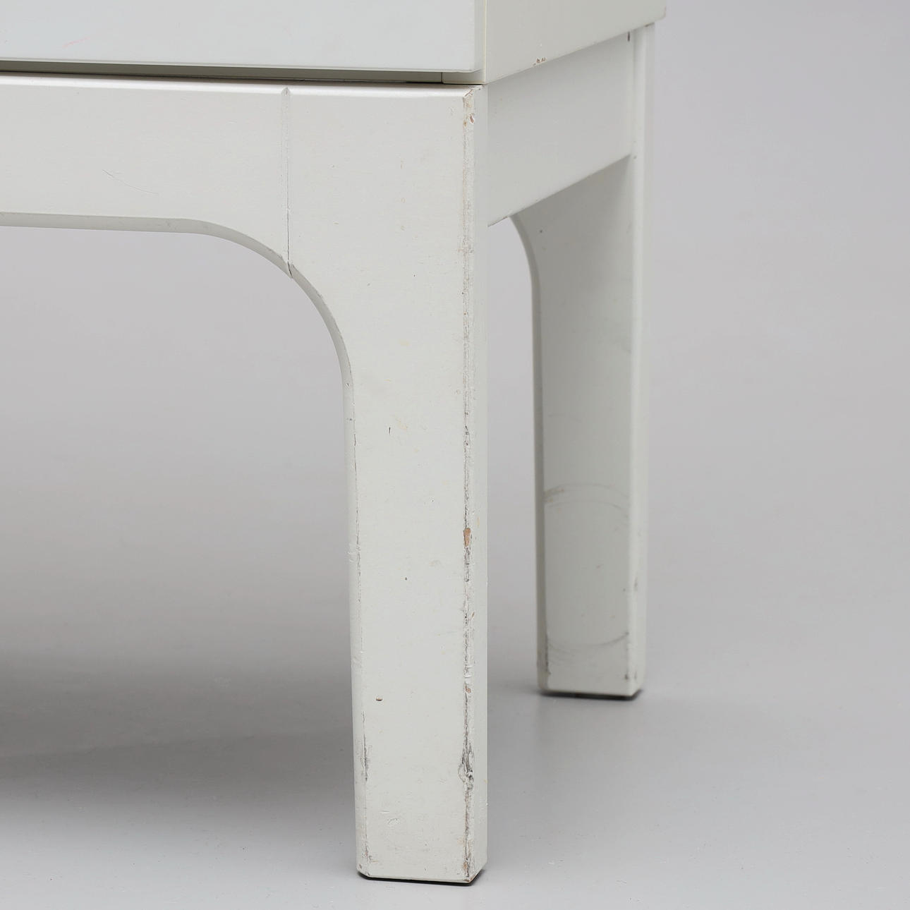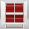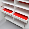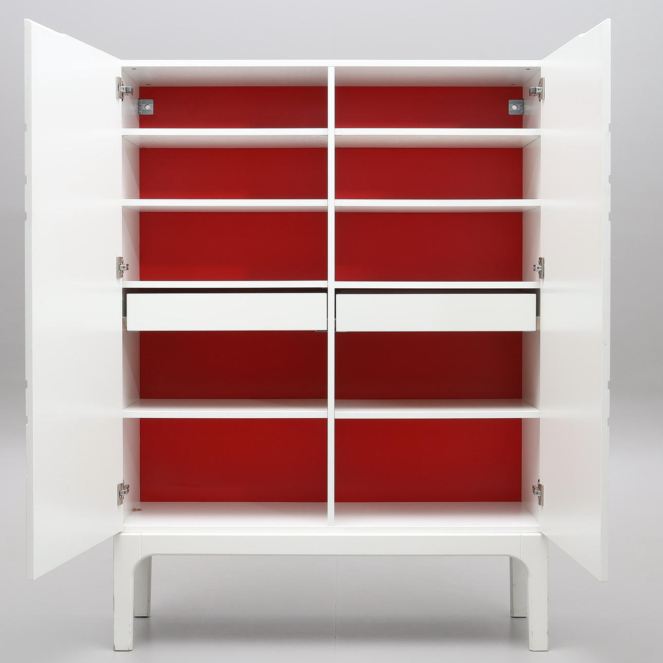 Vitlackat skåp med rödlackad insida.