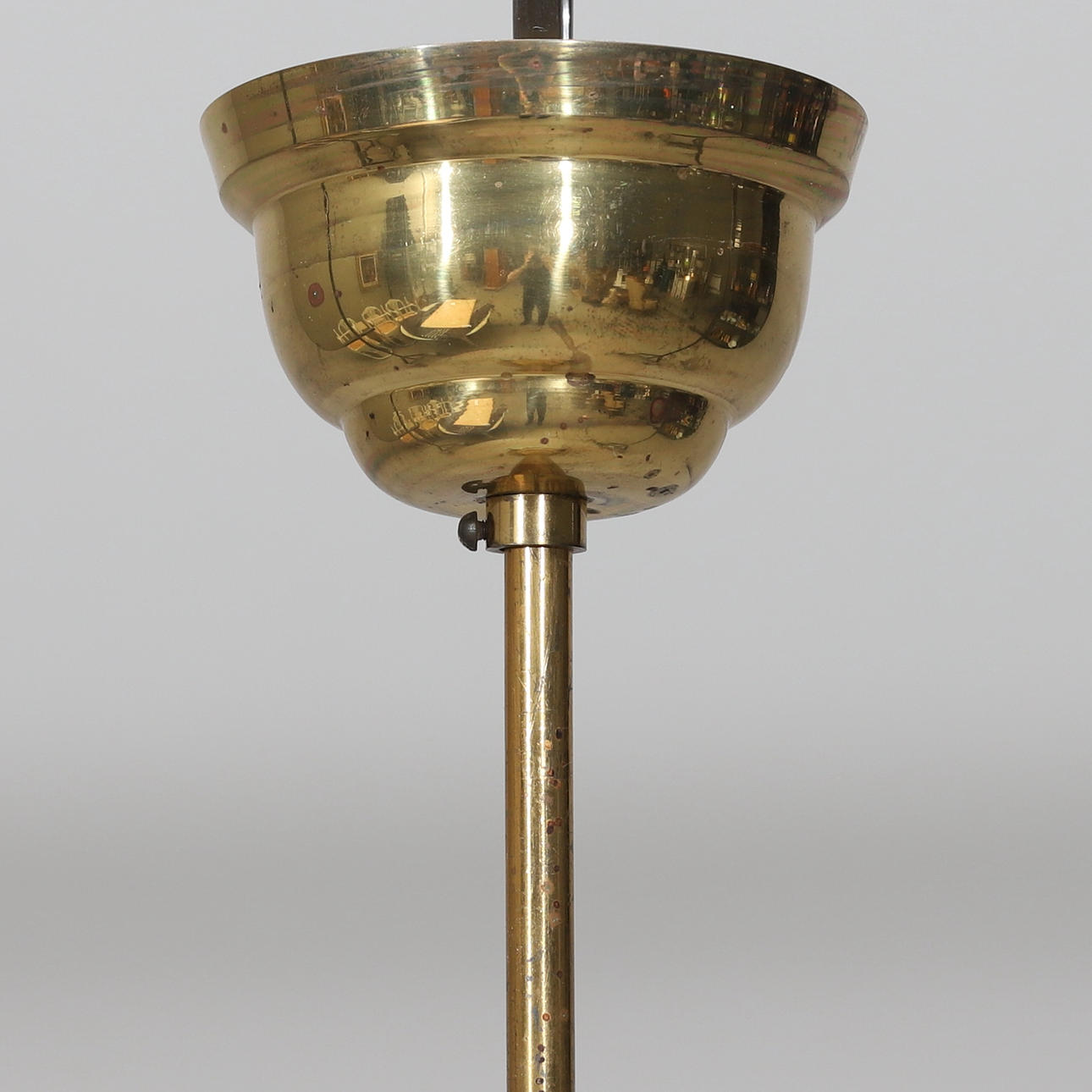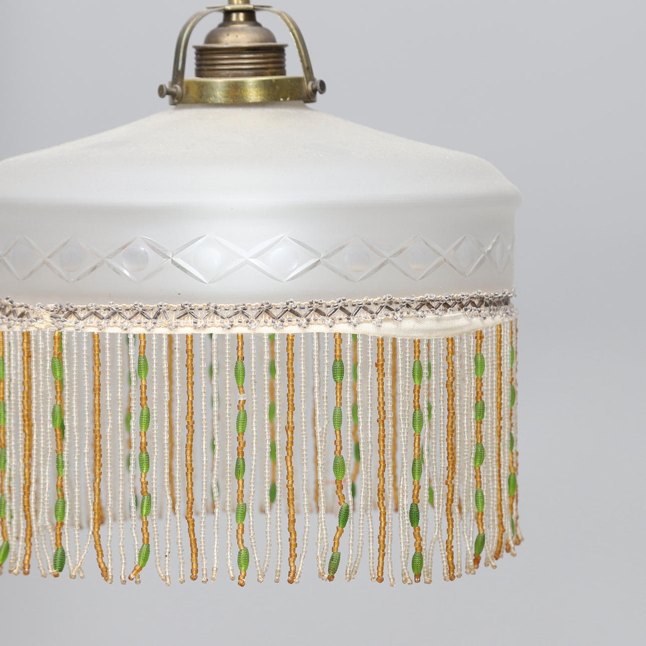 1 ljuspunkt. Mässing/glas. Kupa med slipad dekor. Behängd med prismor. Diameter ca 23 höjd ca 40 cm.