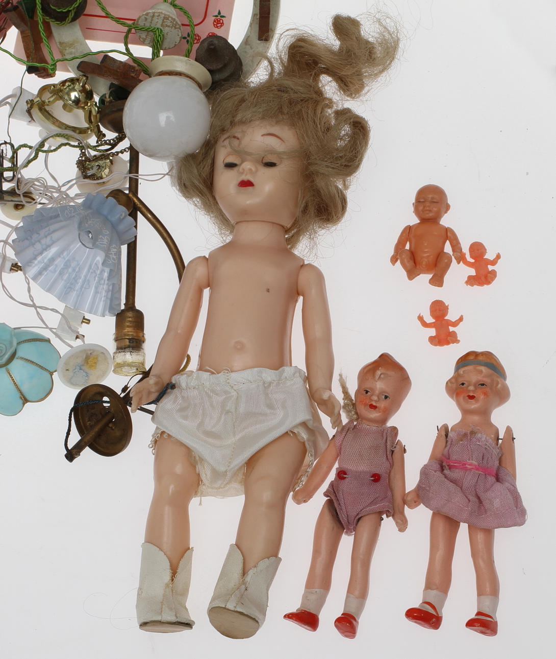 38189. DOCKSKÅPSMÖBLER och MINDRE DOCKOR 1950 - 60 tal.