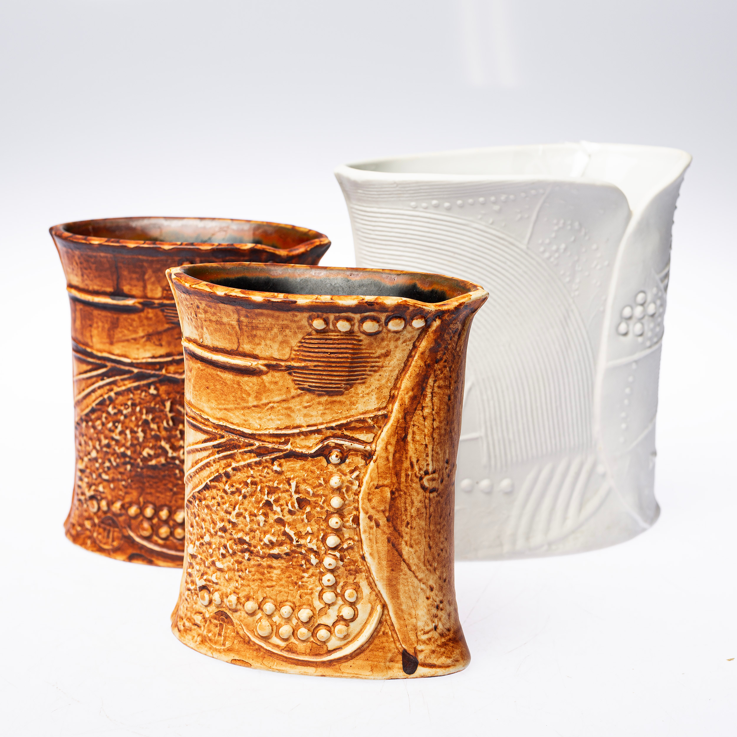3820053. BERTIL VALLIEN. VASER, 3 st " Terra " Keramik, Rörstrand.