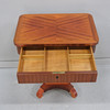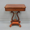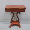 Lyrformat ben på fotplatta med fyra svängda fötter, fanerat med mahogny, 1900-talets andra hälft, höjd 62,5, bredd 54, djup 37,5 cm.