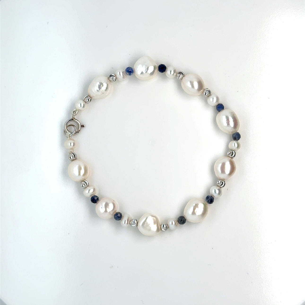 PÄRLARMBAND med pärlor & blå stenar.