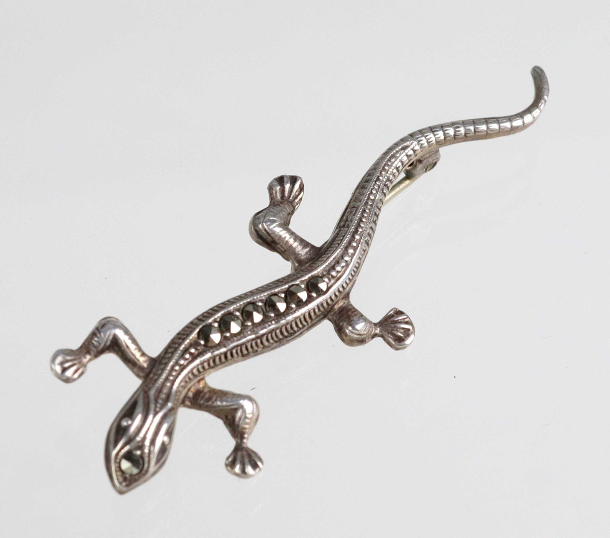 3826869. ANTIK SALAMANDER BROSCH, ödla, silver.