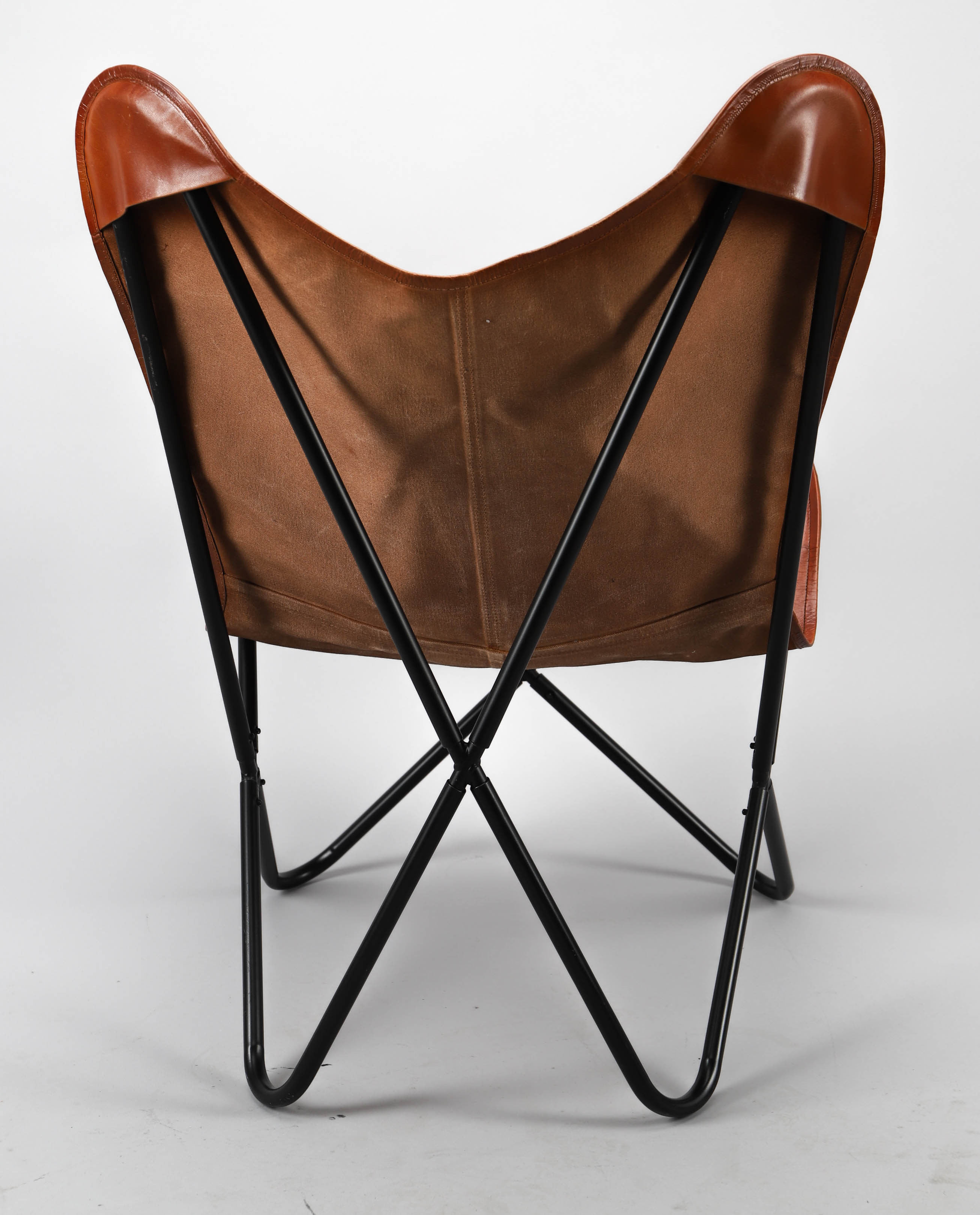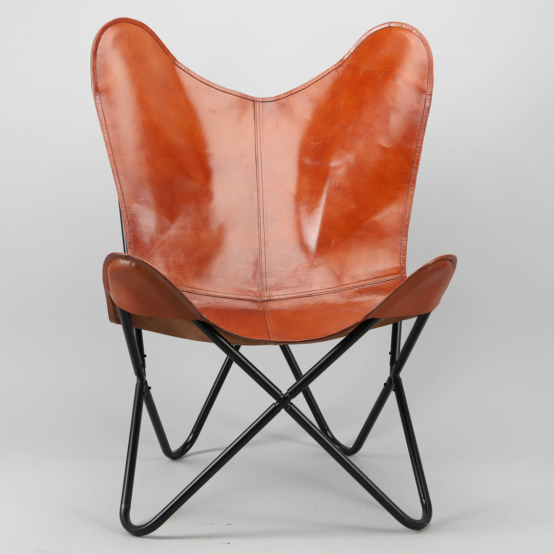 3827780. FLADDERMUSFÅTÖLJ, läder och stål, samtida.