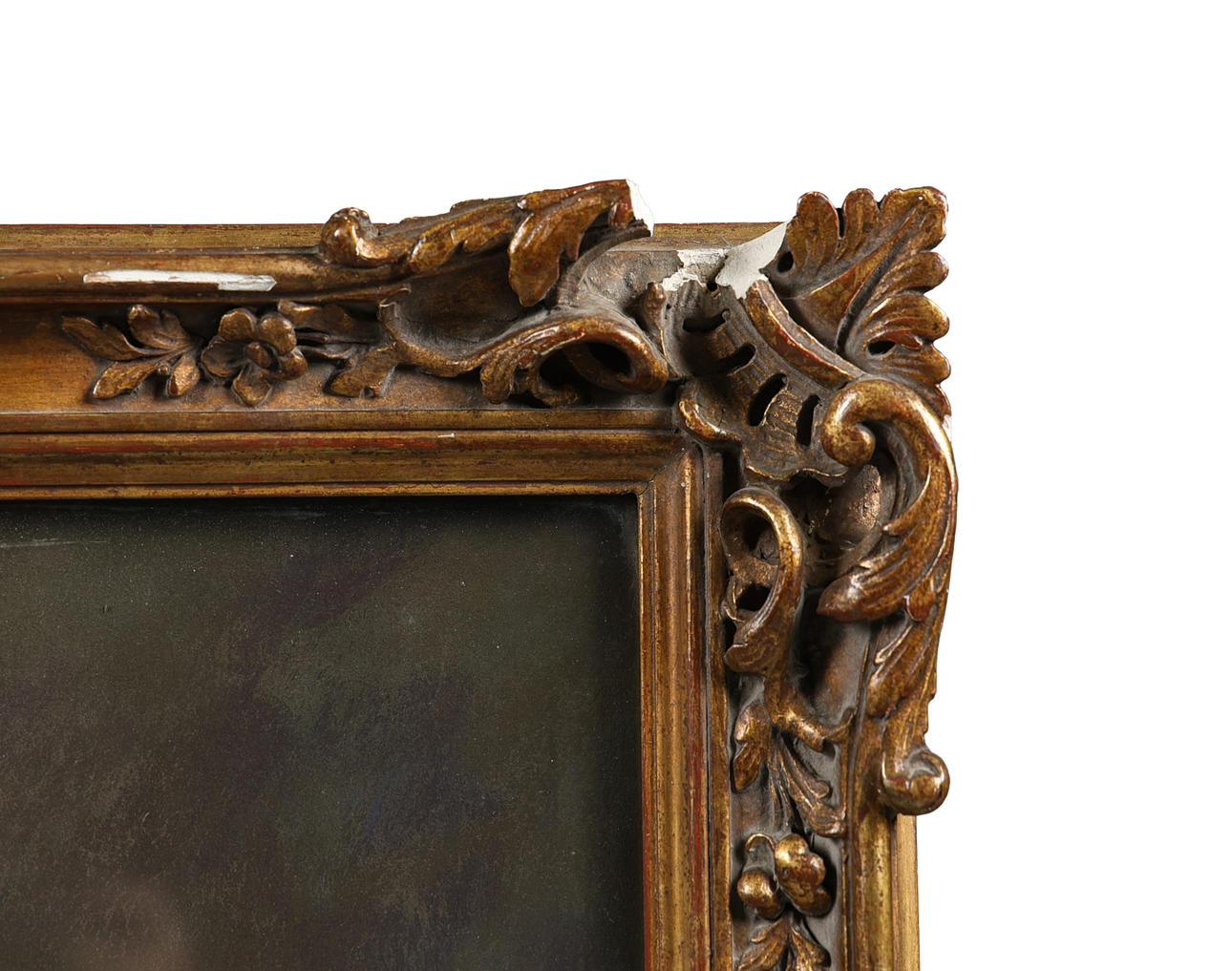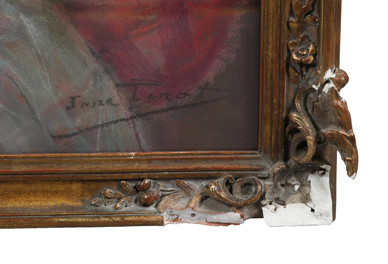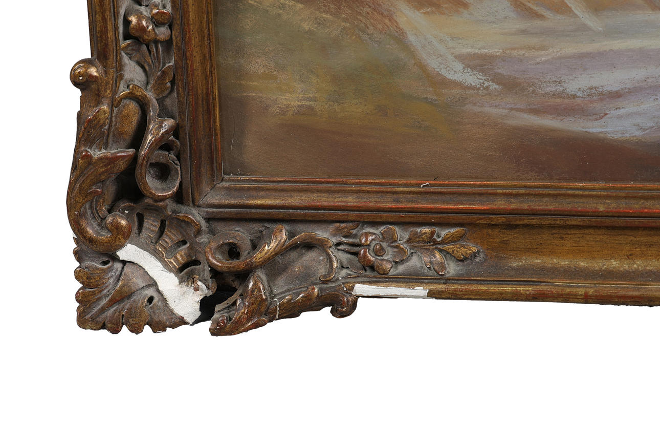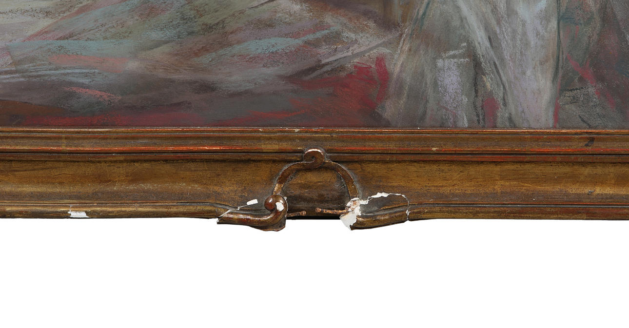 stora förluster på ramen, pastell i gott skick, papper vikat runt båren.