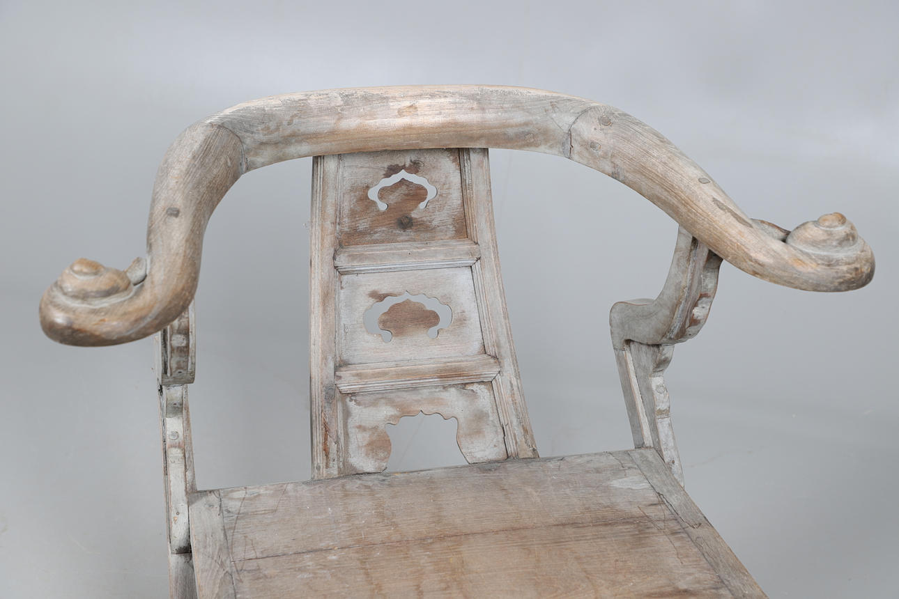 3829204. KINESISK HÄSTSKORYGG TRÄFÅTÖLJ.