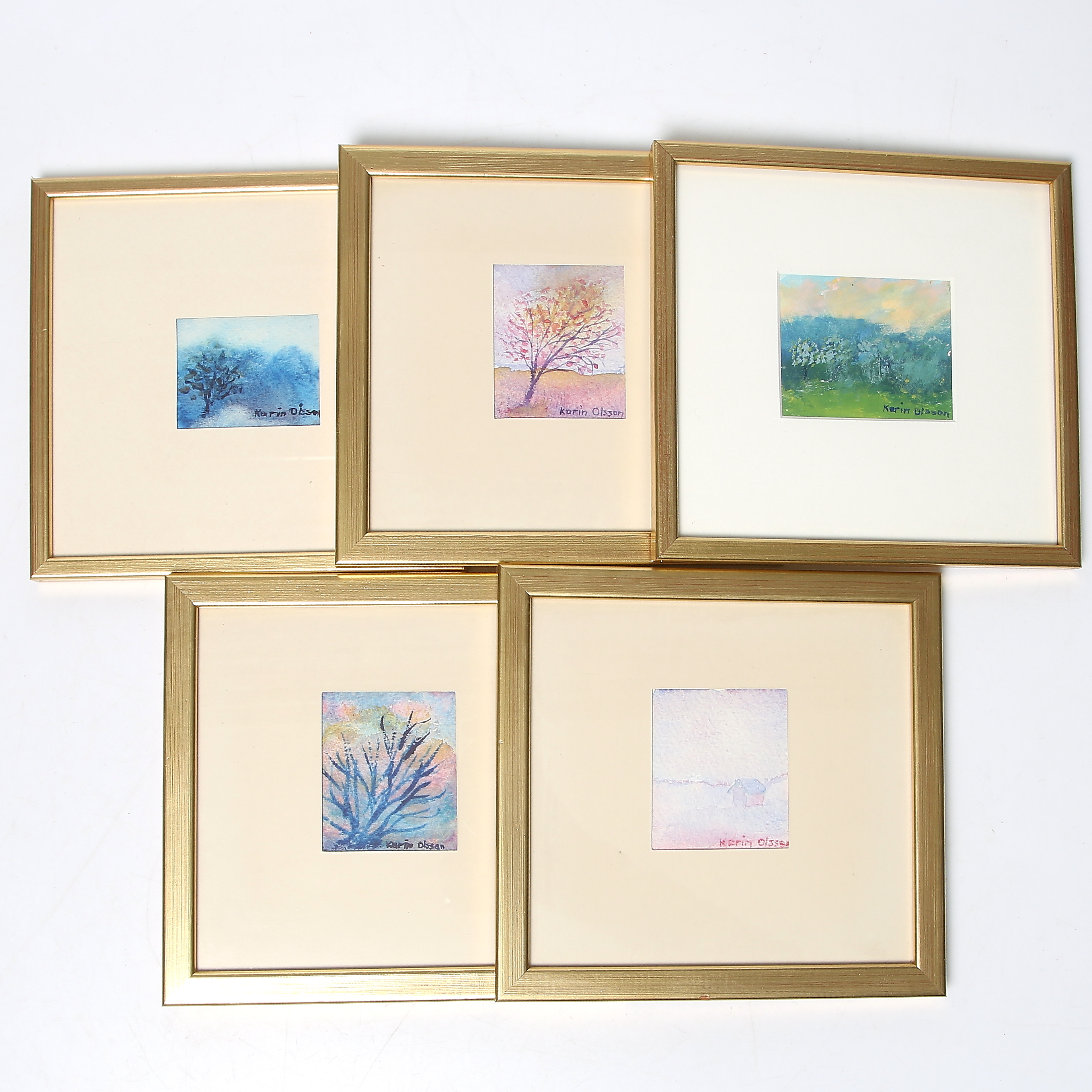 383374. KARIN OLSSON. Träd, 5 st, akvareller, signerade.