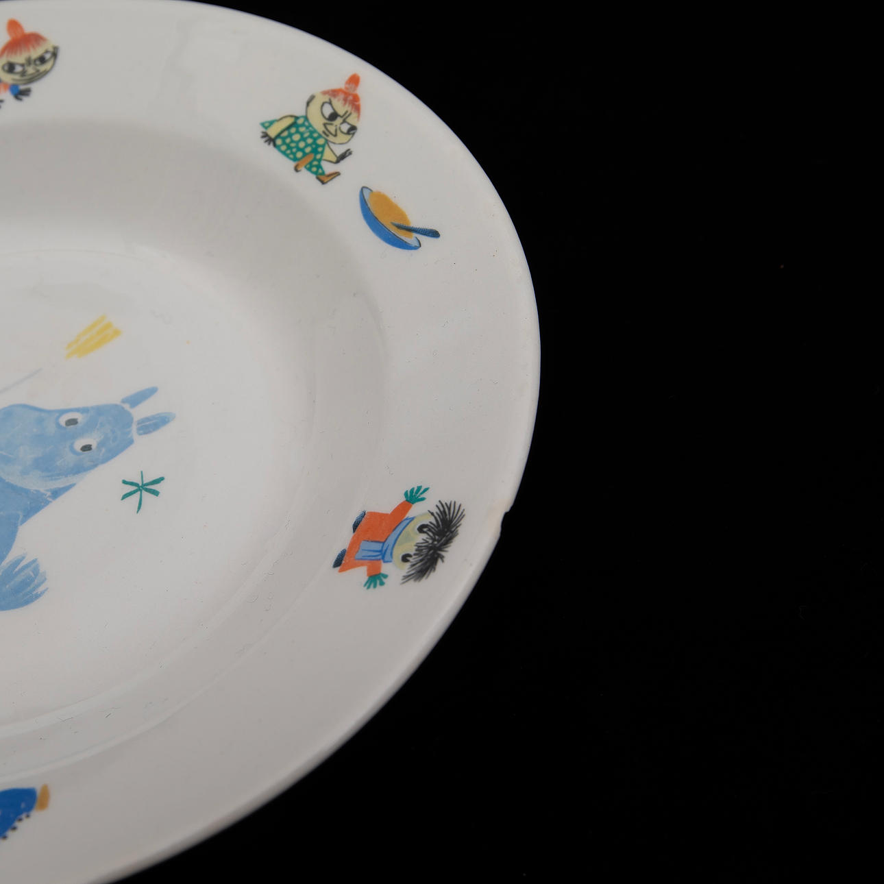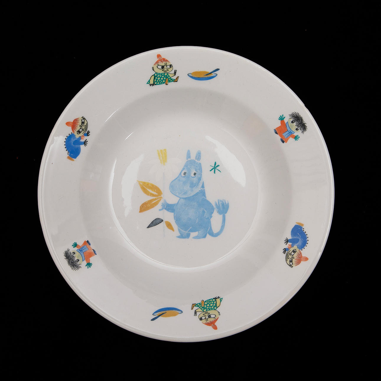 Barntallrikar med Mumintrollet och Snorkfröken. Tallrik, diameter 18,5 cm. Djup tallrik, diameter 19 cm.