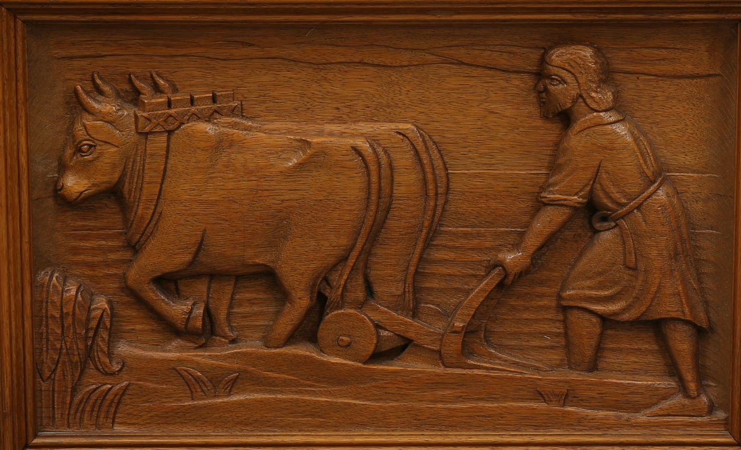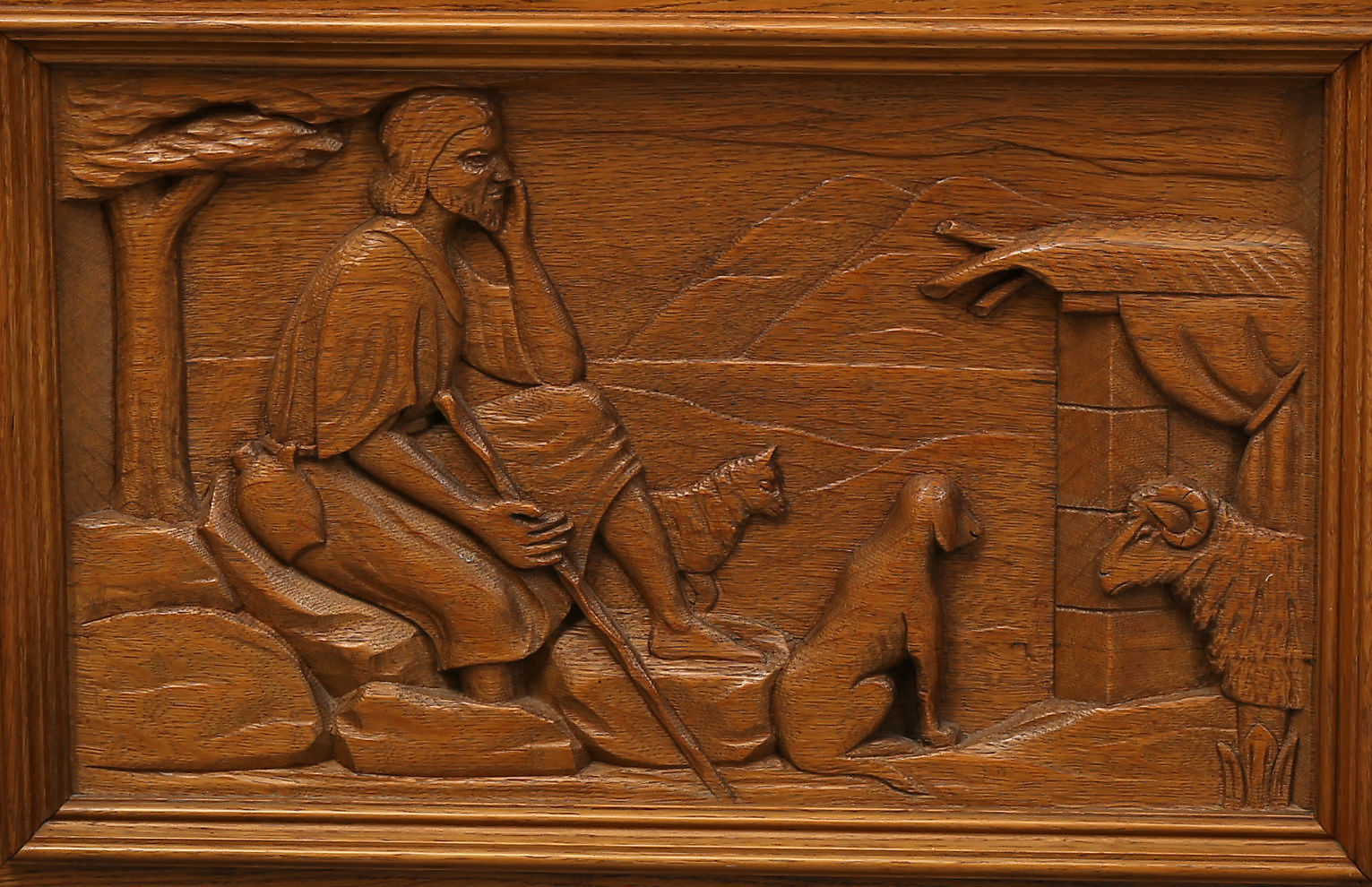 384254. SCHATULL, ek, skulpterad, 1900-talets första hälft.