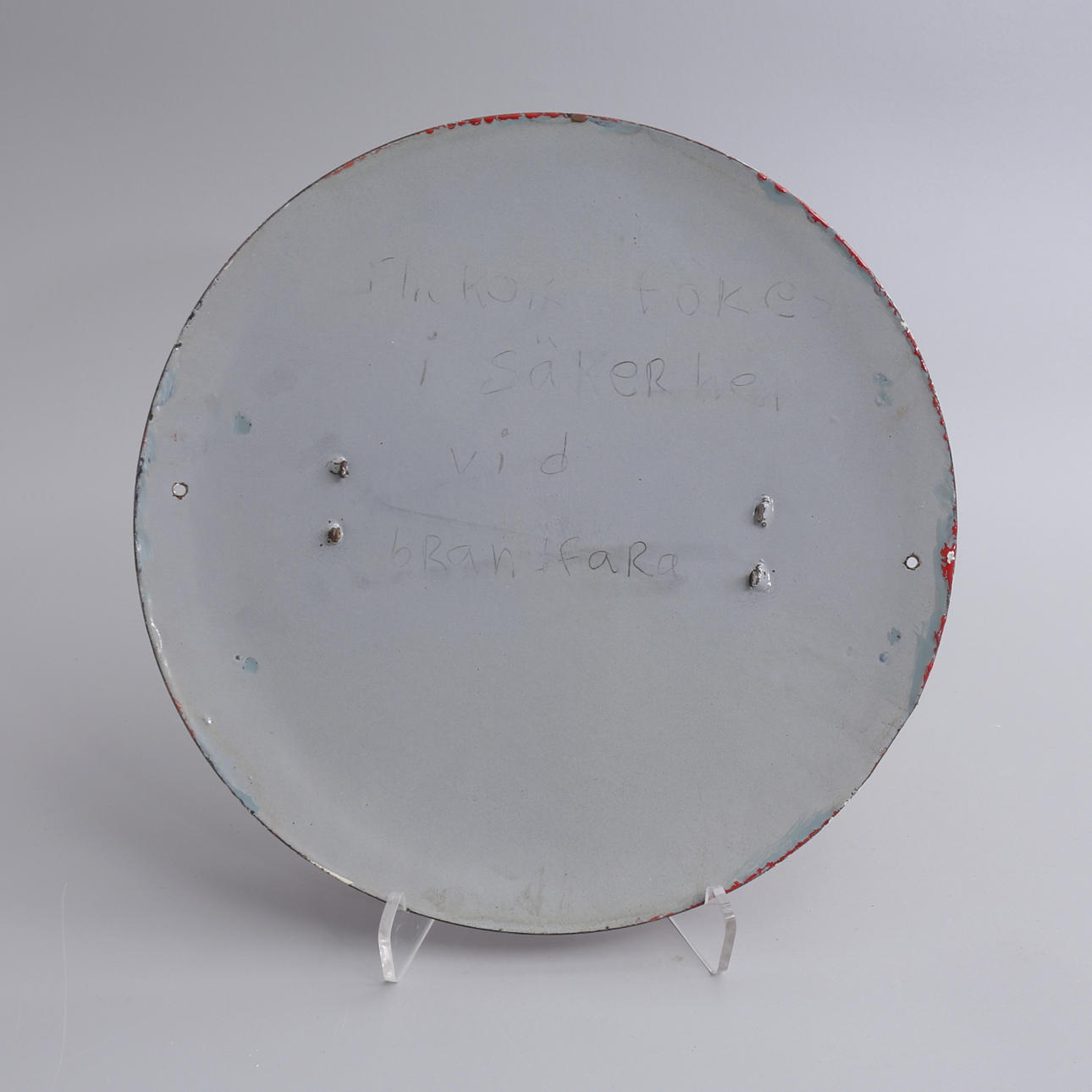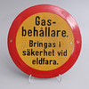 3843486. EMALJSKYLT, "Gasbehållare. Bringas i säkerhet vid eldfara".