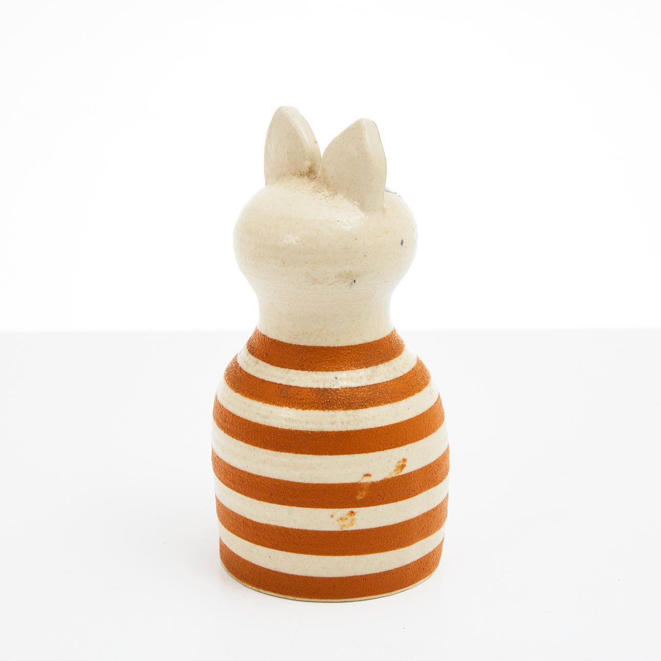 Glaserat stengods, i form av katt, signerad, höjd ca 17 cm.