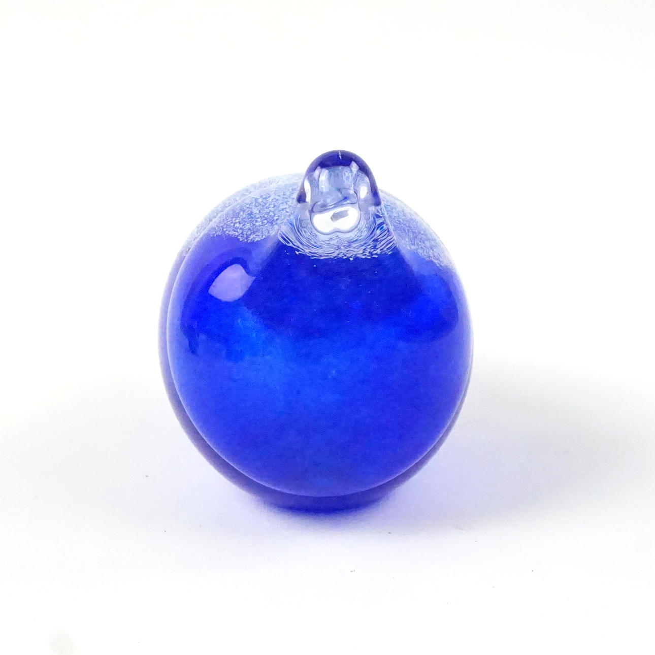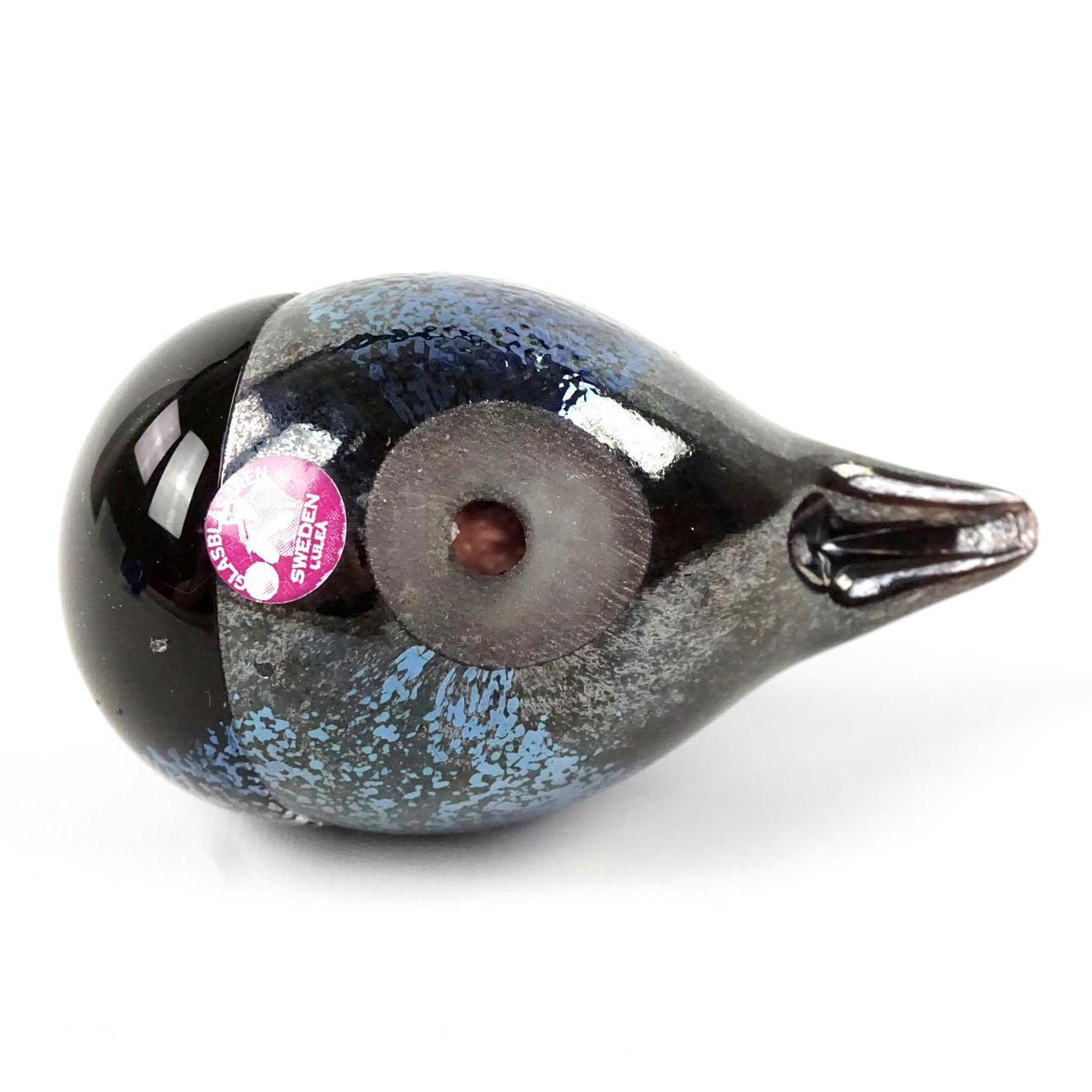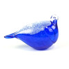 1 fågel i blå glasmassa, omärkt, troligen Haparanda glasbruk, höjd ca 8 cm, längd ca 13 cm.